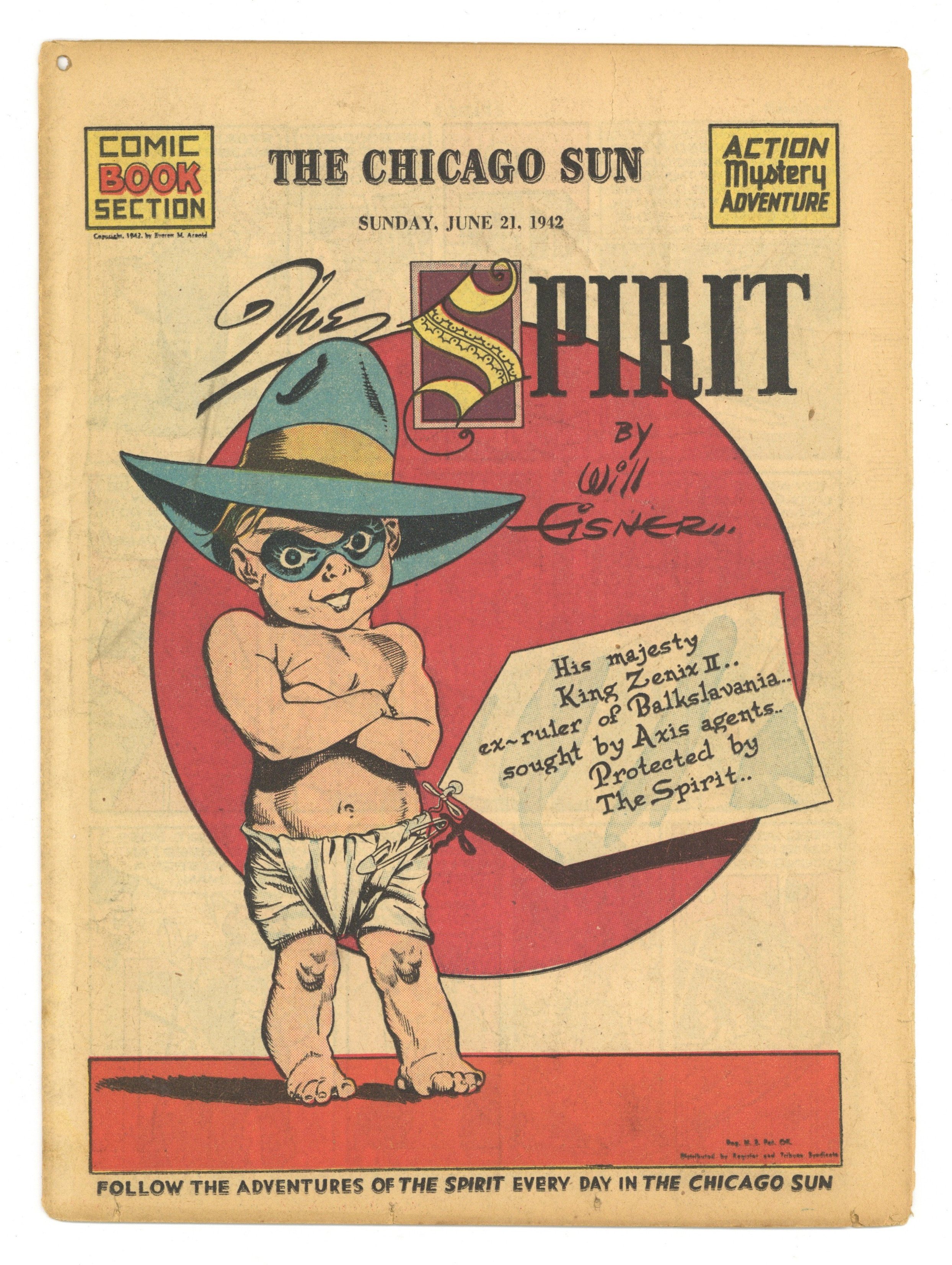 Published 1942 by Promotional.$77.00Spirit Weekly Newspaper Comic Insert. 7-1/2 x 10 inches, 16 pages, full color, all newsprint with no slick cover. Eisner/Fine/Quality staff assist on Spirit.