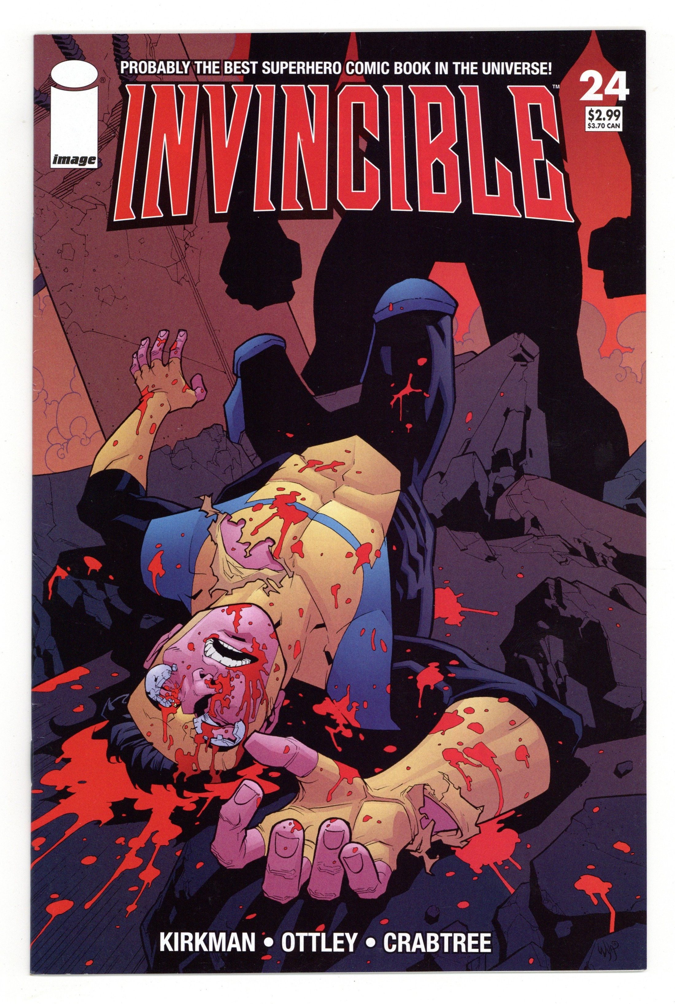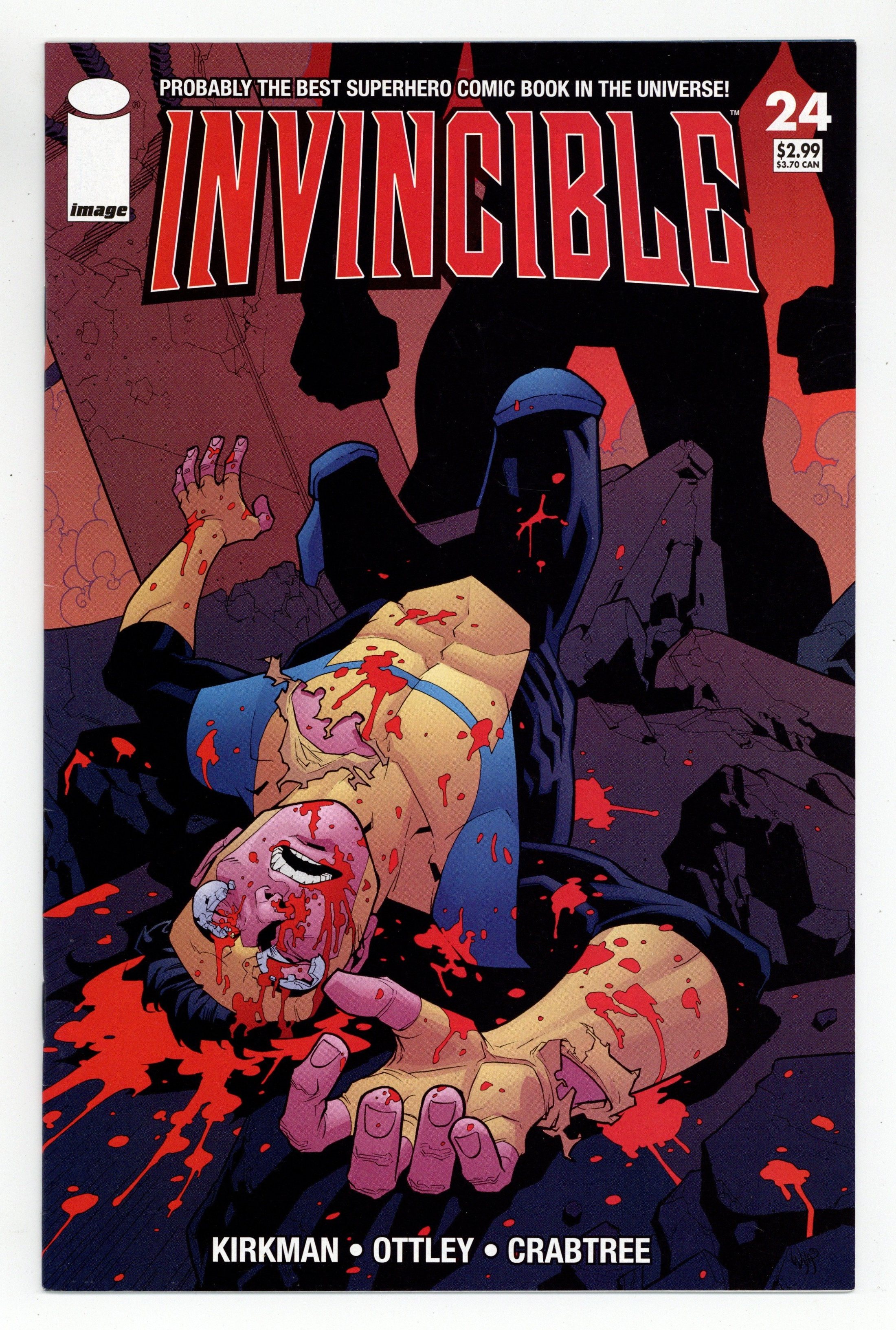 $56.00June 15 ? 32 pg ? FC ? $2.95 written by ROBERT KIRKMAN art & cover by RYAN OTTLEY & BILL CRABTREE. Only once in his career has Invincible been beaten this badly. That time it was his father, Omni-Man, who had done the beating. Who could it be this time? This issue is a can't miss for any long-time fans of the book, and it's all leading up to the HUGE events in issue 25, coming next month. Cover price $2.95.