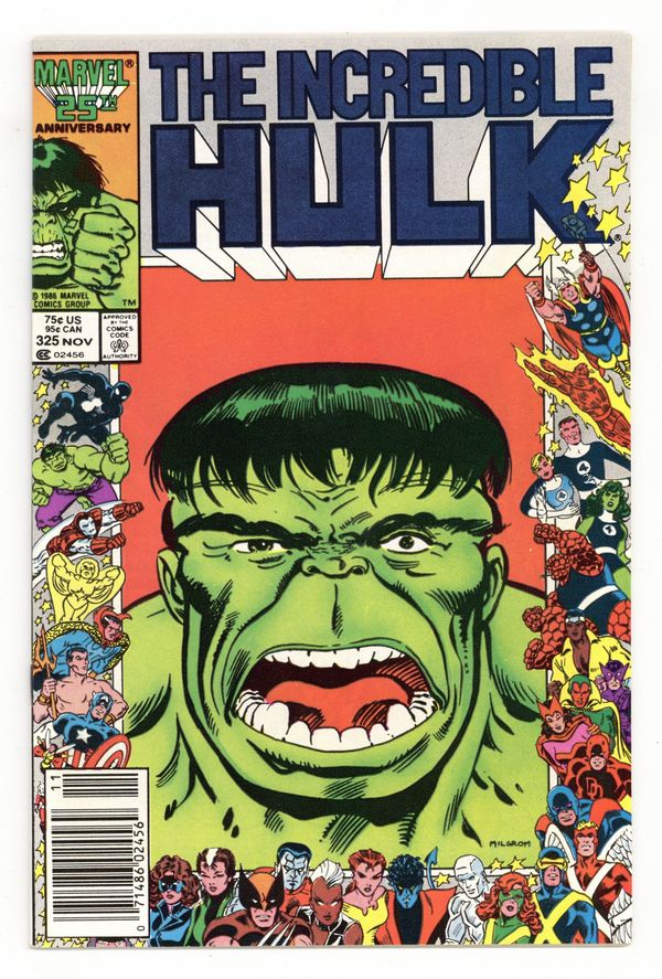 Mark Jeweler Advertisement Insert Variant. "New Hulk!" Story by Al Milgrom. Art by Steve Geiger and Bob Mcleod. It seems at night the Hulk is terrorizing the desert surrounding S.H.I.E.L.D.'s Gamma-Base. But is it Bruce Banner or some new threat. Plus, fresh off his defeat at the hands of the West Coast Avengers (West Coast Avengers #12) the electrical menace known as Zzzax arrives to Gamma-Base for surveillance. Yeah, that'll end well. 32 pages. Cover price $0.65.