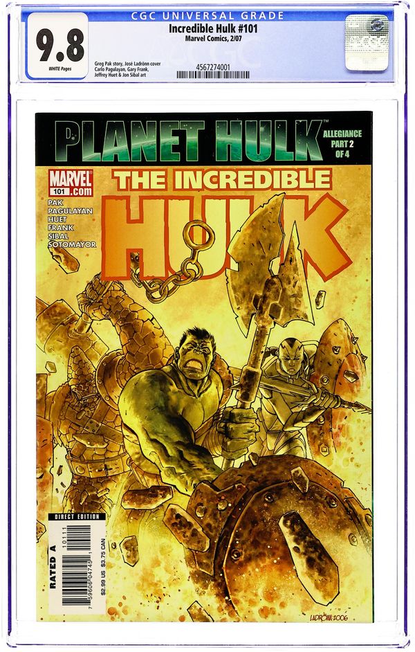 Planet Hulk: Allegiance 2/4 - Written by GREG PAK. Penciled by CARLO PAGULAYAN. Cover by LADRÖNN Don't miss the next installment of the comic that Wizard Magazine dubbed "Book of the Month"! In this issue: Accompanied by Caiera the Oldstrong and Hiroim the Shamed, the Hulk heads into the hold of the Shadow Elders to learn if he truly is the legendary savior known as the Sakaarson, or just another angry monster. Also, secrets revealed about the Great Portal! The final showdown with the Spikes! Elloe makes a shocking decision! And the Hulk smashes and smashes and smashes some more! Featuring pencils by the brilliant Carlo Pagulayan as well as a slew of pages by a surprise guest artist! 36 pgs., Rated A. $2.99
