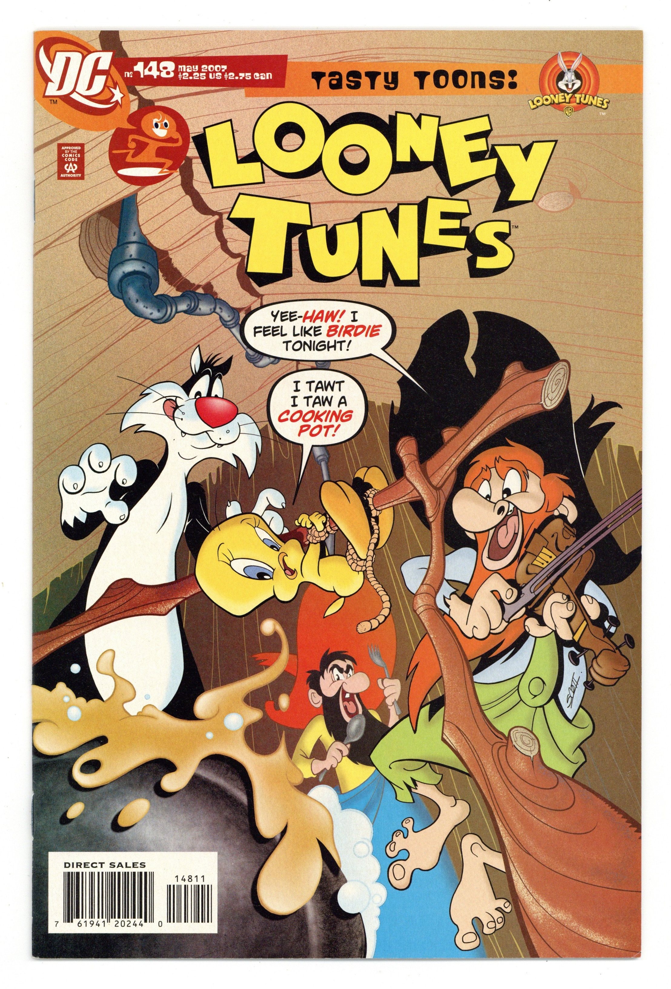 Cover by Scott Gross. Written by Earl Kress and Robbie Busch. Art by Leo Batic, Pablo Zamboni, Walter Carzon, Horacio Ottolini and Ruben Torreiro. Sylvester and Tweety go on a camping trip with Granny. Unfortunately, the locals aren't the most welcoming folks in "Cabin Flavor" by Earl Kress, Leo Batic and Horacio Ottolini. Plus: Bugs Bunny in "Build Hare" by Robbie Busch, Pablo Zamboni and Horacio Ottolini, along with "Pie Hero" by Robbie Busch, Walter Carzon and Ruben Torreiro. 32 pages, full color. Cover price $2.25.
