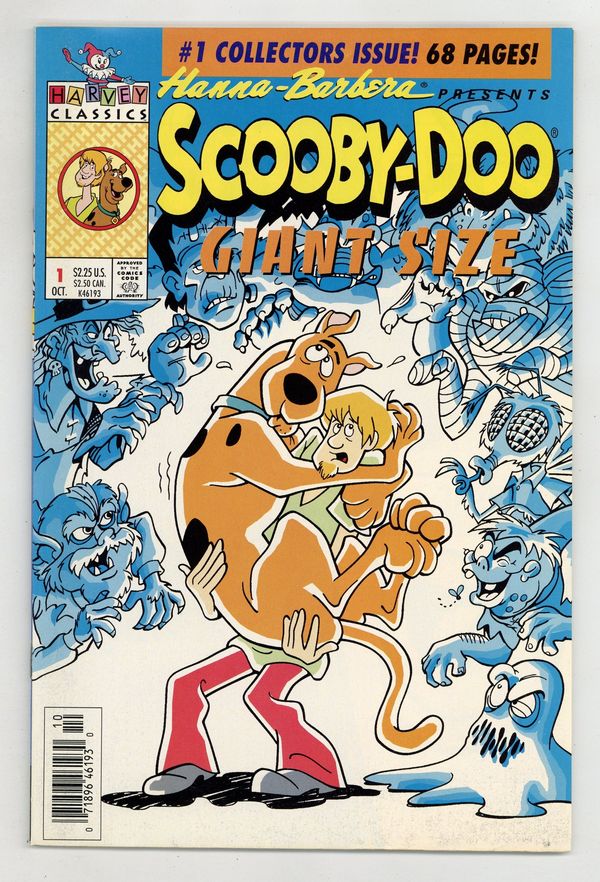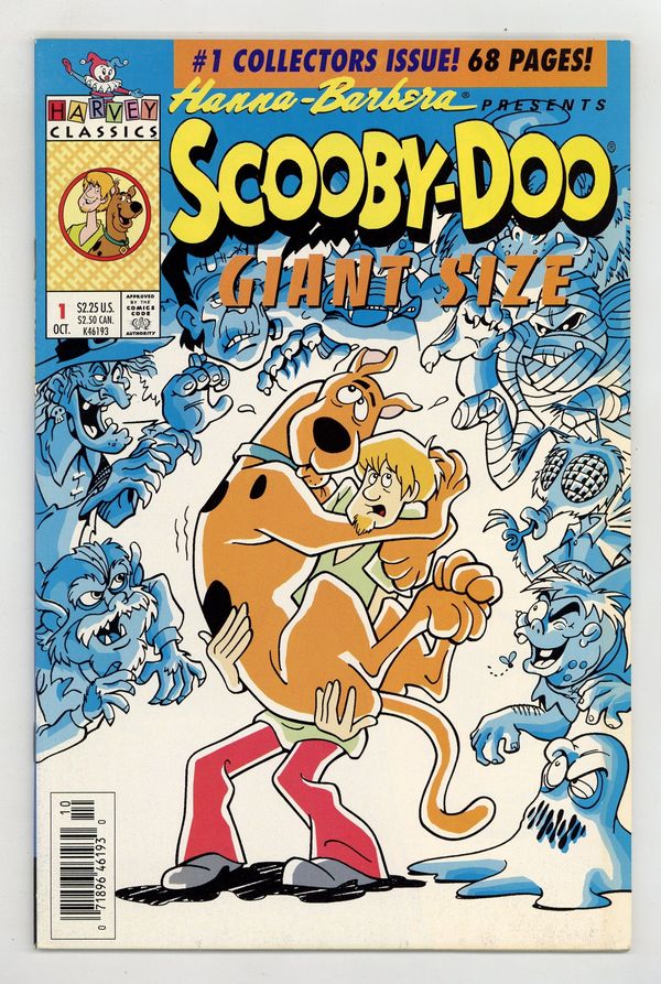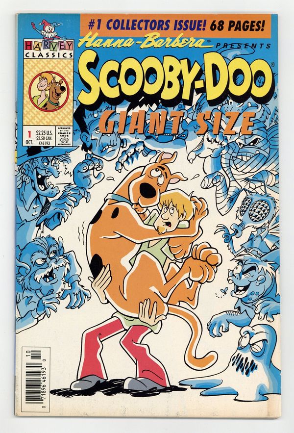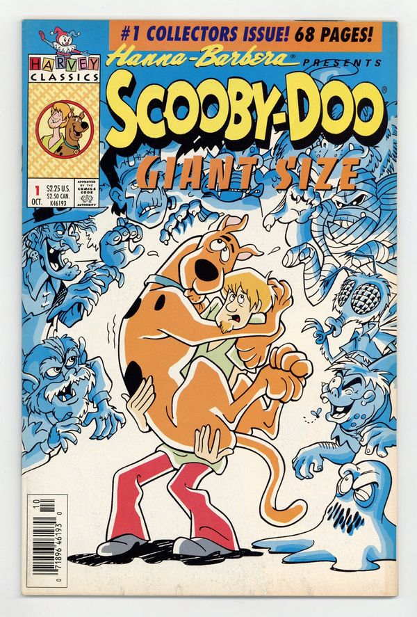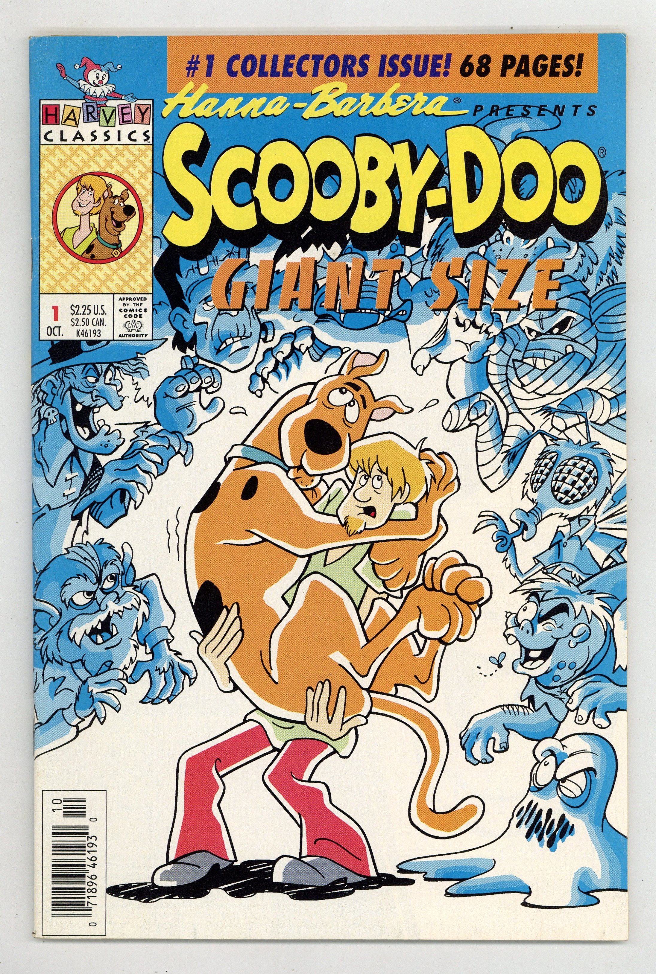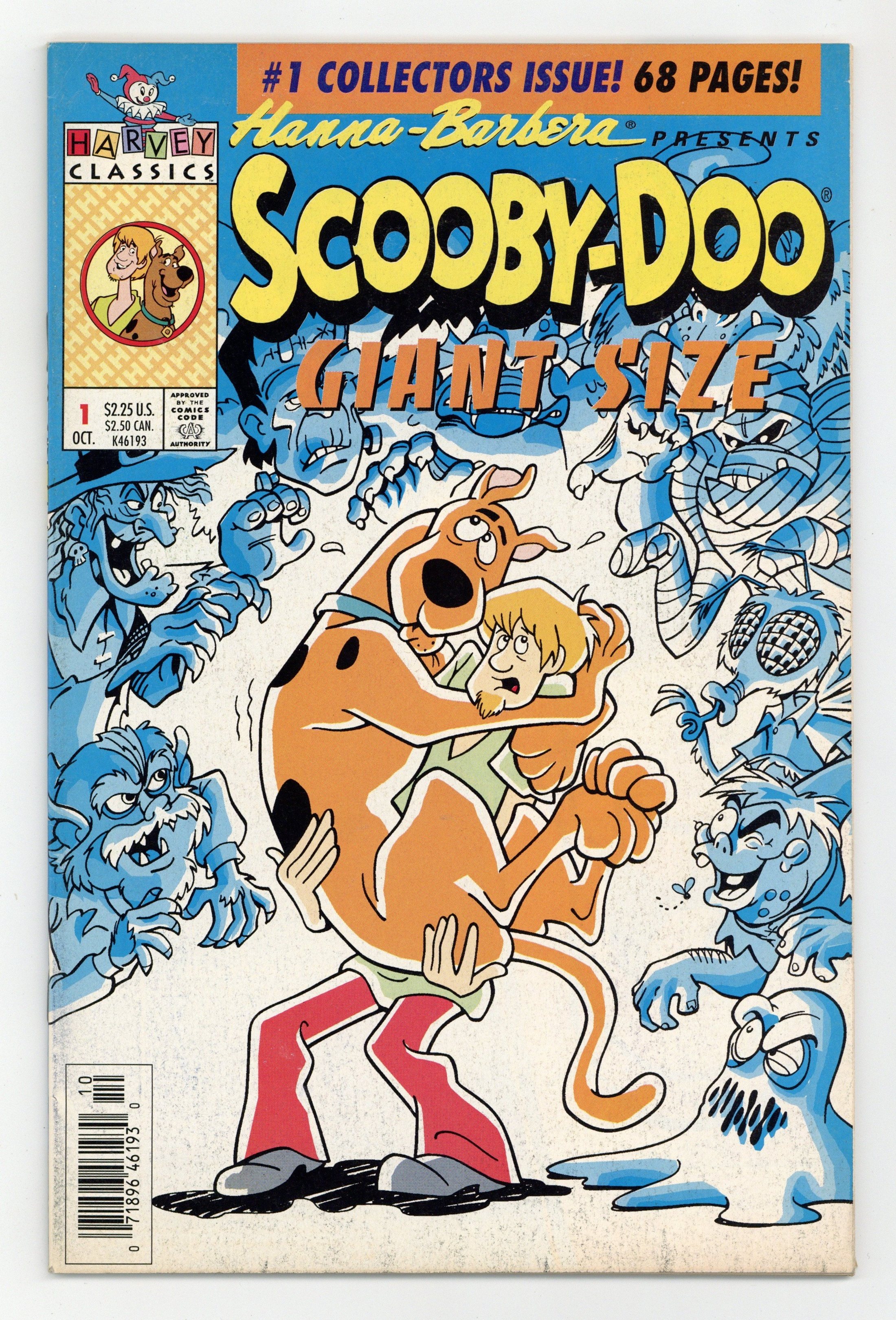 $19.50Stories and art by Joe Gill and Bill Williams. Scooby and the Mystery Inc. gang return to comics as part of Harvey Comics' revival in the early 1990s. Scooby Doo dresses up as a werewolf when the gang investigates a haunted house. The kids help a ghost who was accused of treason during the Revolutionary War. Bank robbers disguise themselves as Mystery Inc., and the real teens must stop them to clear their names. What Witch Is Which?; The Hitch-Hiker; What Became of Honest Jawn?; A Mad Mad Mad Mad Man; 200 Years Ago Tonight; Double Trouble; Quick Draw McGraw: Indians!; The Ghost of Mean Blacksmith Smith. 64 pages, Full Color. Cover price $2.25.