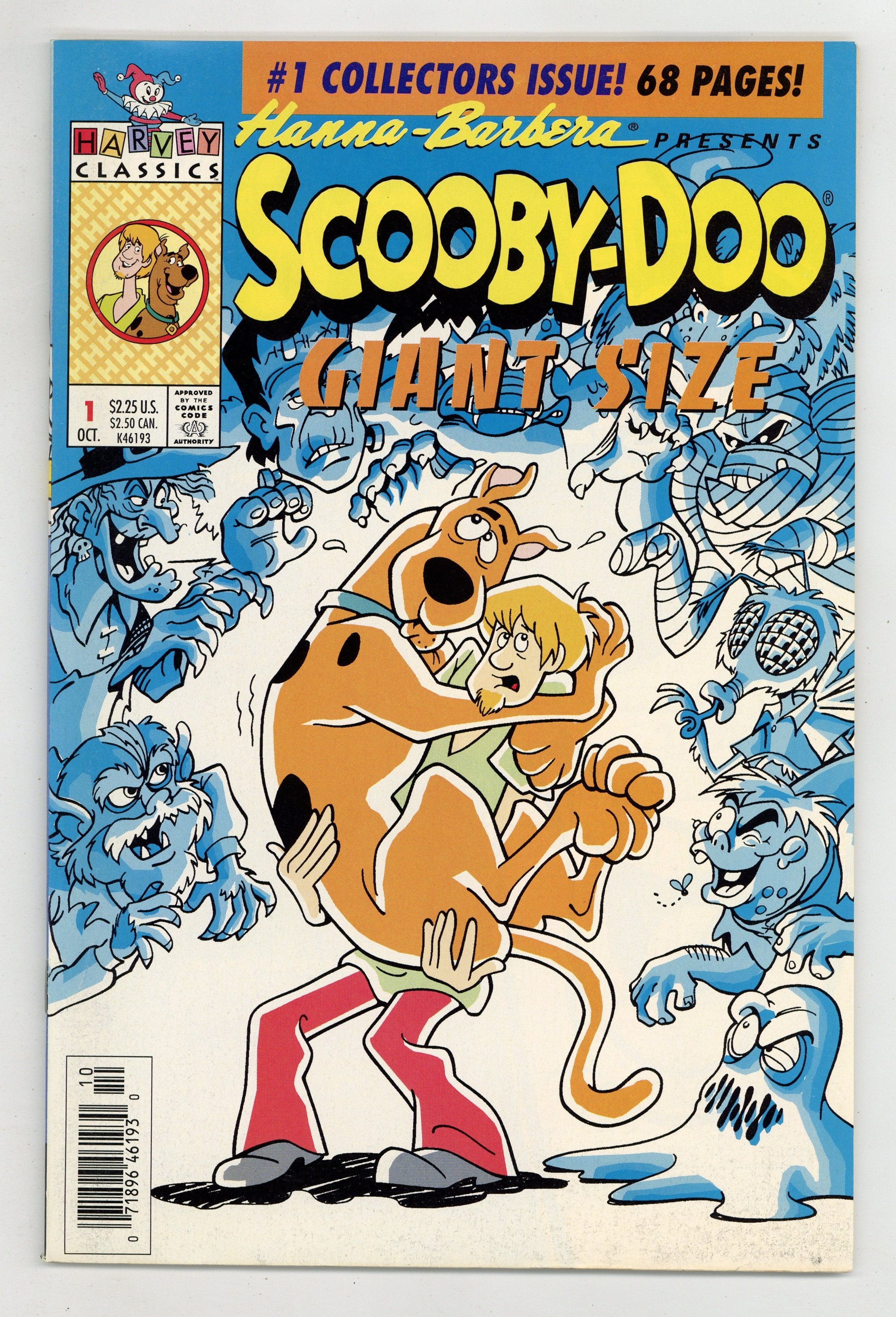 $16.50Stories and art by Joe Gill and Bill Williams. Scooby and the Mystery Inc. gang return to comics as part of Harvey Comics' revival in the early 1990s. Scooby Doo dresses up as a werewolf when the gang investigates a haunted house. The kids help a ghost who was accused of treason during the Revolutionary War. Bank robbers disguise themselves as Mystery Inc., and the real teens must stop them to clear their names. What Witch Is Which?; The Hitch-Hiker; What Became of Honest Jawn?; A Mad Mad Mad Mad Man; 200 Years Ago Tonight; Double Trouble; Quick Draw McGraw: Indians!; The Ghost of Mean Blacksmith Smith. 64 pages, Full Color. Cover price $2.25.