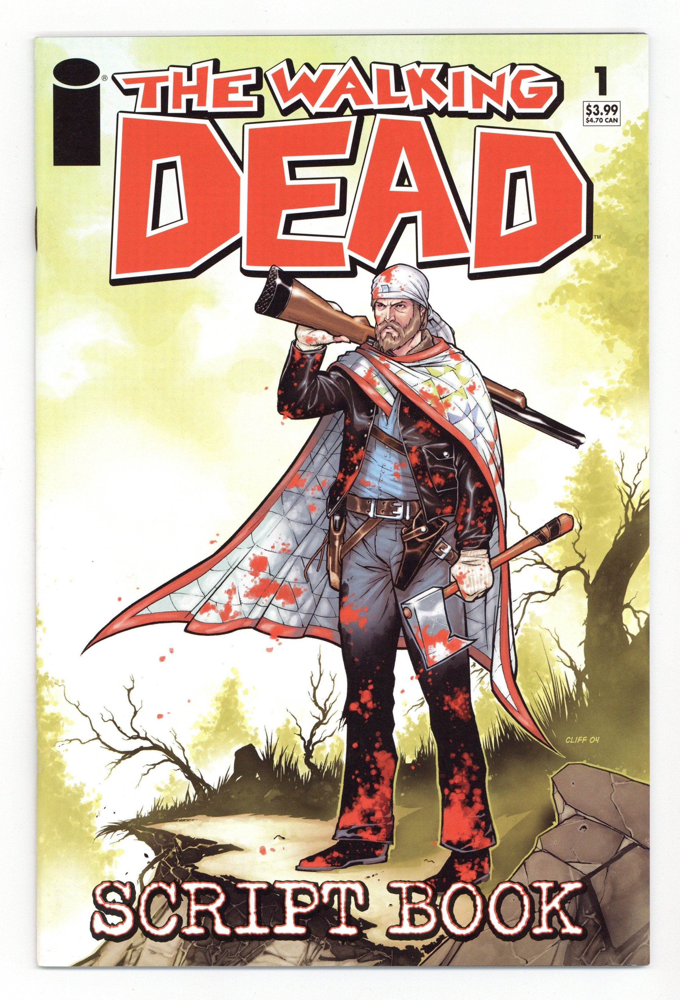 $20.50written by ROBERT KIRKMAN cover by CLIFF RATHBURN For your reading pleasure we present the complete, unedited, scripts for the sold-out first six issues of THE WALKING DEAD. If you think the issues were wordy - just wait until you see what they look like without pictures! See what changed, see what stayed the same - see completely different lines of dialogue that were later improved. RETAILER WARNING: MAY NOT BE SUITABLE FOR ALL AGES Cover price $3.99.