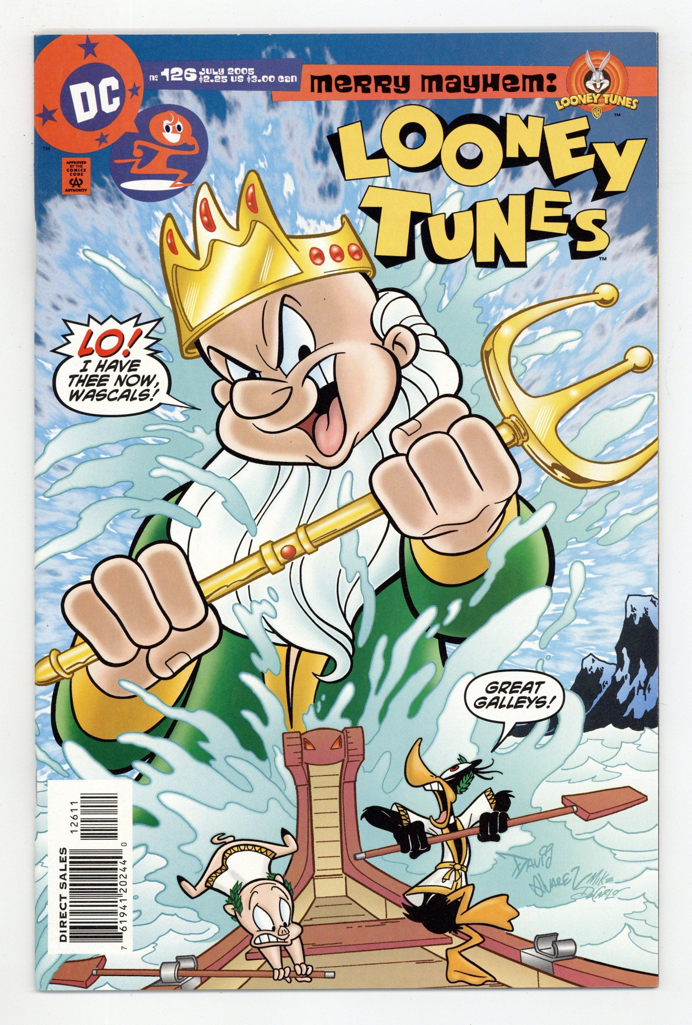 Cover by David Alvarez & Mike DeCarlo. Stories by Jesse Leon McCann and Frank Strom. Art by Leo Batic & Horatio Ottolini, Pablo Zamboni & Ruben Torreiro and Omar Aranda & Alberto Saichann. Daffy and Porky join Ulysses on his voyages through Greek mythology in "Freaks & Greeks"! Plus, Daffy finds himself in "Great Moments in History"! Also, Hubie and Bertie trick Claude into thinking that various zoo animals are a cat's favorite food in "Survival of the Famished"! And Witch Hazel just wants to cook up her captives Hansel and Gretel, but Goldilocks and the Three Bears crash her house looking for a place to stay in "The Old Feedbag"! 40 pages, full color. Cover price $2.25.