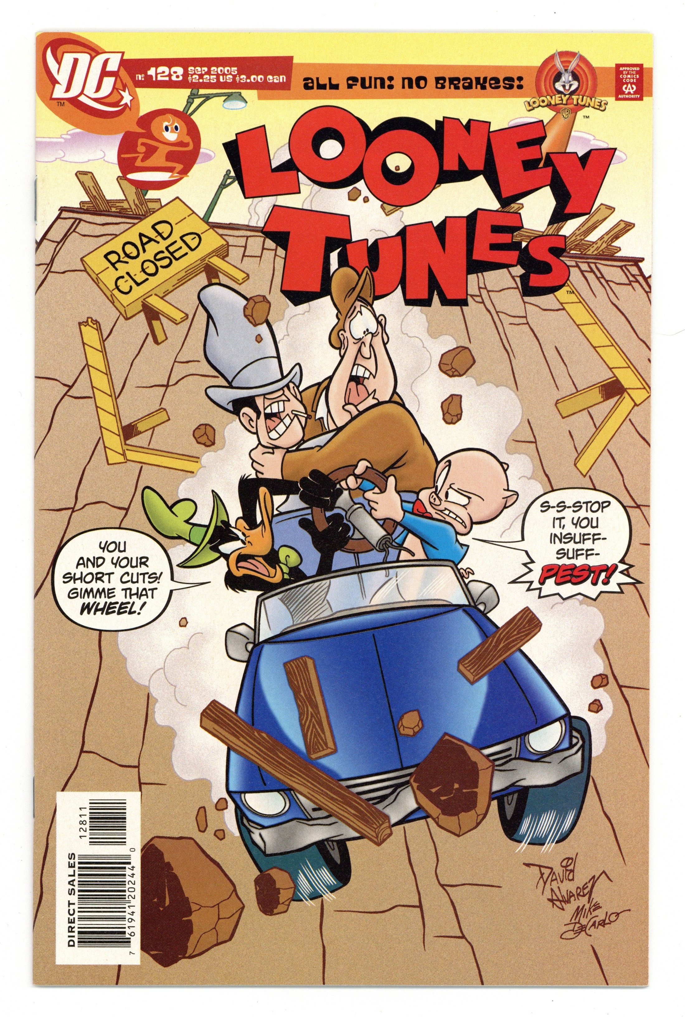 Cover by David Alvarez & Mike DeCarlo. Stories by Robbie Busch, Frank Strom and Sam Agro. Art by David Alvarez & Mike DeCarlo and Leo Batic & Horacio Ottolini. Featuring: Daffy Duck, Porky Pig, Rocky and Mugsy in "Highway Robbery"; Yosemite Sam, Wile E. Coyote and the Road Runner in "Nature of the Feast"; Foghorn Leghorn, Barnyard Dawg and the Weasel in "Blow, Foghorn, Blow"; and Witch Hazel and Porky Pig in "Witch Hunt"! 32 pages, full color. Cover price $2.25.
