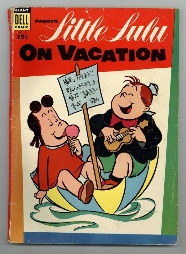 Four Color reprints: Little Lulu in "Treasure Hunt," "Sunday Afternoon," "The Dancing Bear," "Tubby's Travels," "A Feathered Friend in Need," "Just a Gigolo," "Babes in the Wood," "Mountain Climbing," and an untitled story. John Stanley art. 100 Pages, Full Color. Cover price $0.25.