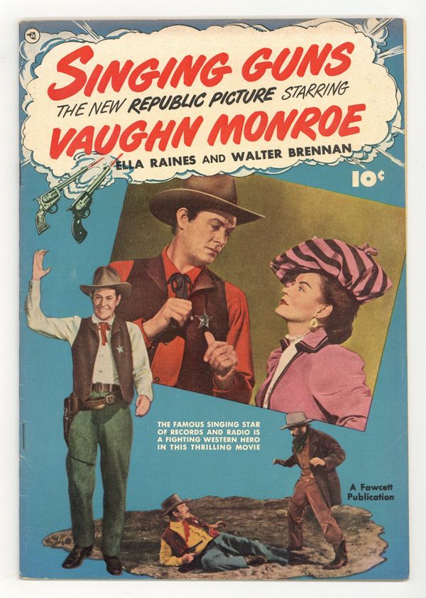 Photo cover features Vaughn Monroe and Ella Raines. Story by Joe Millard, from the screenplay by Dorrell McGowan and Stuart E. McGowan. Fawcett presents adaptations of popular movies of the 1950s in comics form. This issue is based on the 1950 Republic Western. An outlaw accidentally becomes the sheriff of a small town while performing an act of kindness. Although he still has plans to rob the local mine, the mistaken promotion gives him a chance to turn his life around. Based on a story by legendary pulp writer Max Brand. Plus photo stills from the film. 32 pages, Full Color. Cover price $0.10.