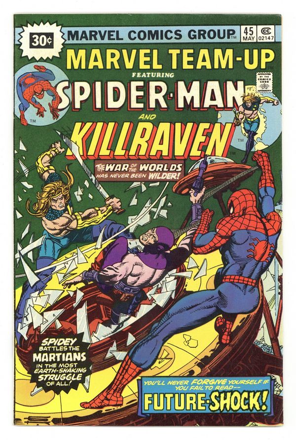 30 cent variant edition had limited distribution. Spider-Man and Killraven battle the Martians in "Future-Shock!" Script by Bill Mantlo, pencils by Sal Buscema, inks by Mike Esposito and Dave Hunt. Green Goblin cameo. Letter to the editor from Eclipse Comics' Dean Mullaney. Gil Kane cover. The letters page has Marvel Value Stamp Series B # 75. Cover price $0.30.