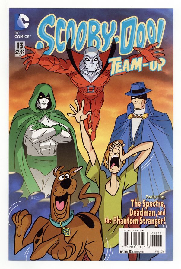 Written by Sholly Fisch. Art and Cover by Dario Brizuela. There's nothing unusual about ghosts disappearing-but if other ghosts don't know what happened to them, there's a mystery afoot! When the Phantom Stranger recruits Scooby and the gang to follow a trail of clues, things get even stranger-like seeing an unexpectedly brave Shaggy leaping acrobatically into the fray (mainly because he's possessed by the hero known as Deadman)! 28 pages, full color. All Ages Cover price $2.99.