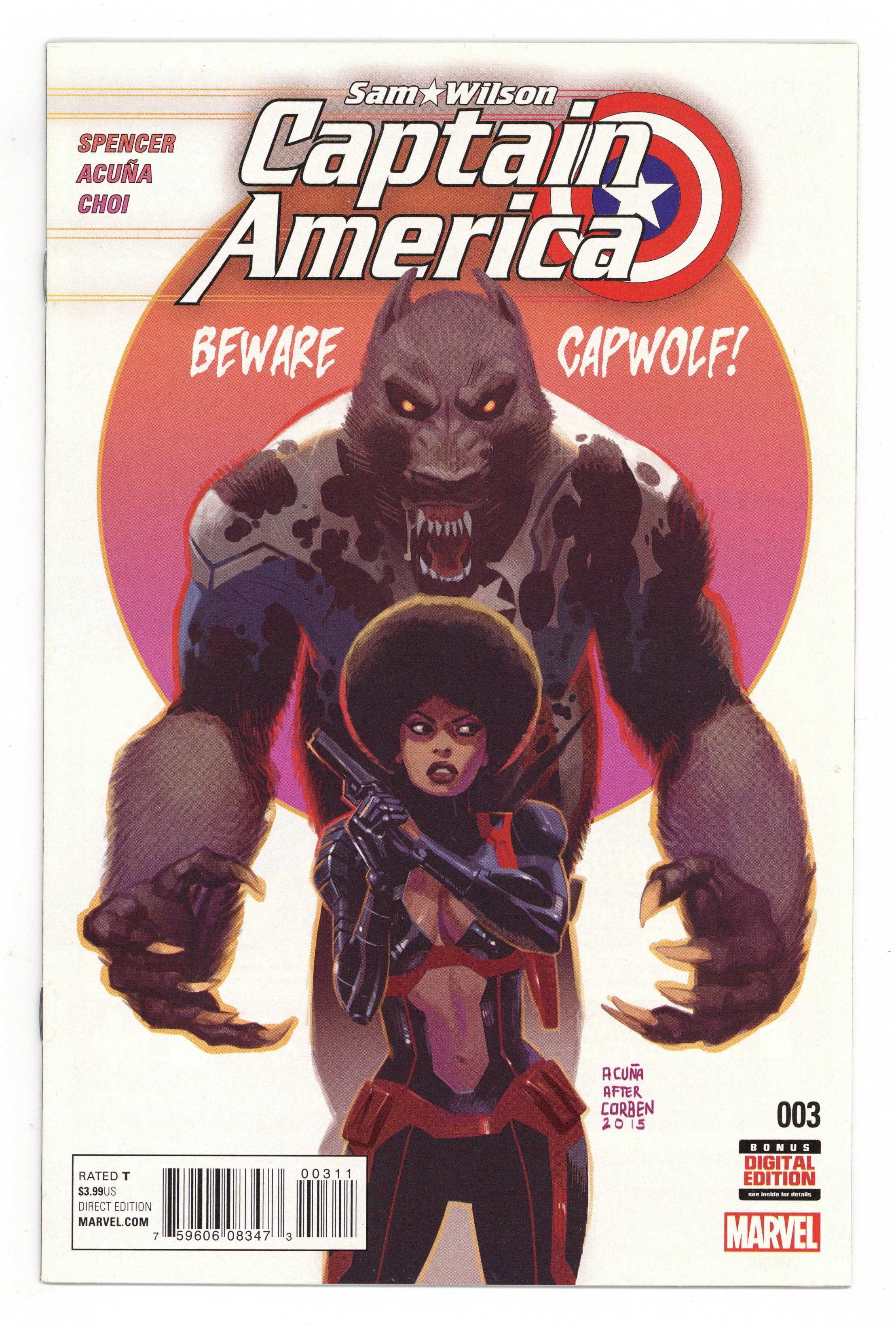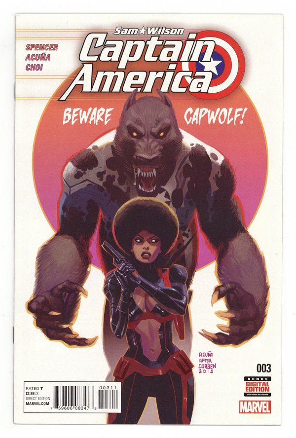 Tags: Marvel Legacy Numbering: Captain America (part 672), Captain America$15.00Written by Nick Spencer. Art and Cover by Daniel Acuña. Because you demanded it-- the return of Cap-Wolf (er, Fal-Cap-Wolf)! What horrors await-- IN THE DUNGEON OF DOCTOR MALUS? 32 pages, full color, Rated T Cover price $3.99.