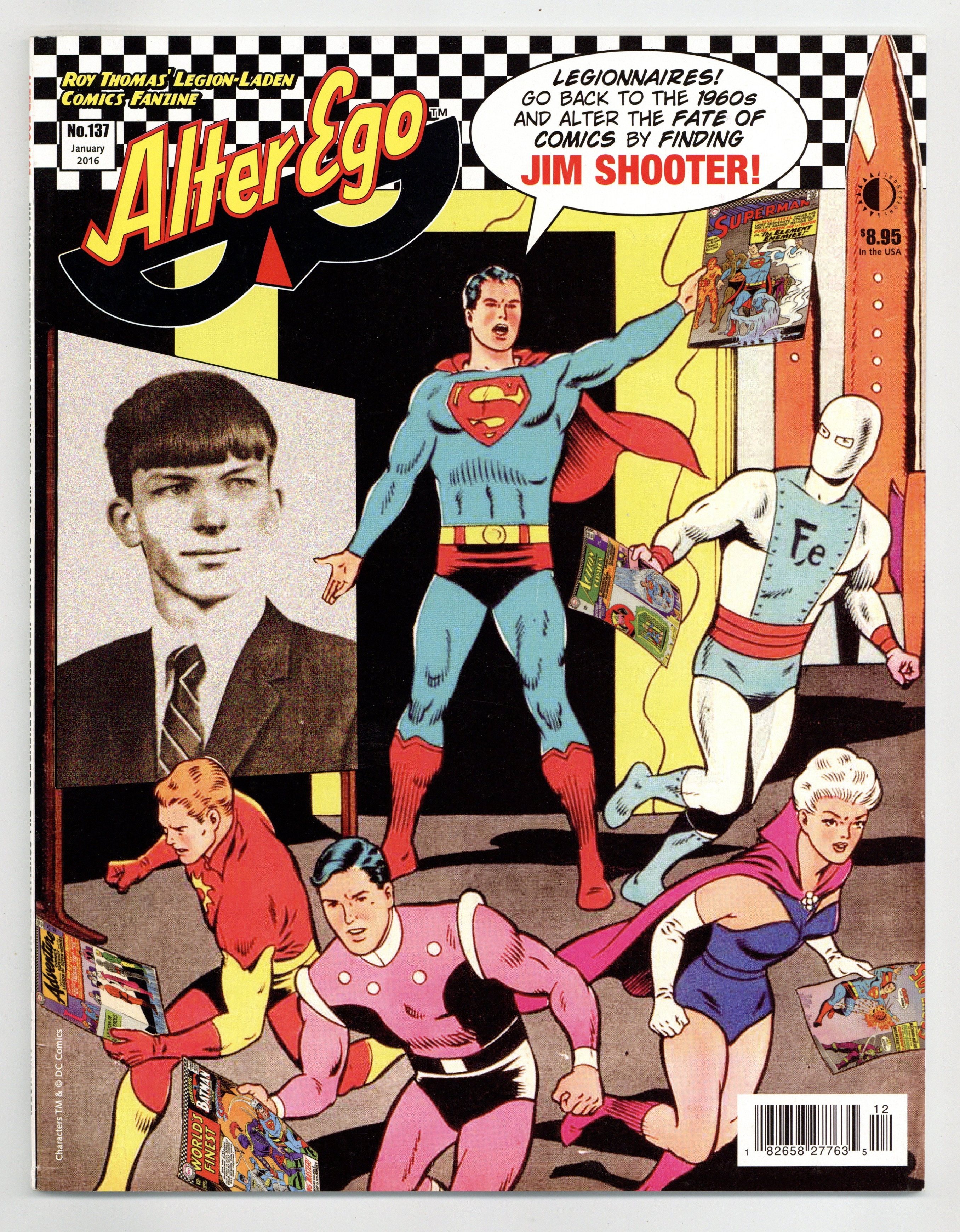 Published Jan 2016 by TwoMorrows.$11.25Alter Ego #137 presents an incredible interview with Jim Shooter, who sold his first script to DC in 1965 -- at age 13! We chronicle the first decade of his color-splashed career, featuring The Legion of Super-Heroes, Superman, Supergirl, Captain Action, and others, with art by Curt Swan, Wally Wood, Gil Kane, George Papp, Jim Mooney, Pete Costanza, Win Mortimer, Wayne Boring, Al Plastino, et al.! Plus: Dan Barry: The Latter Days of Flash Gordon & A Return to Comic Books - Concluding Alberto Becattini's study of a controversial artistic talent; Mr. Monster's Comic Crypt: In the Interests of Science - Michael T. Gilbert talks about his very first comic strips; Comic Fandom Archive: Survivors of the First Comicon - Bill Schelly presents the 50th-anniversary panel of those who were there in 1964; Fawcett Collectors of America - P.C. Hamerlinck ushers in Gerald Edwards' take on Fawcett in the UK, 1943-62. Cover by Curt Swan & George Klein. Edited by Roy Thomas. 80 pages, full color. Cover price $8.95.