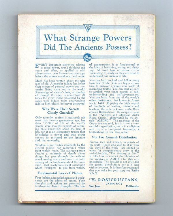 Published Jul 1953 by Clark Publishing Company.$19.50Volume 6 - Issue 7, July 1953. Pulp magazine devoted to exploring the paranormal. This issue features Telepathy in Pets, Murder by a Ghost, and....Has Atlantis Been Found? Softcover, 5 1/2-in. x 7 1/2-in., 130 page, Text (with B&W Illustrations and Photos). Cover price $0.35.