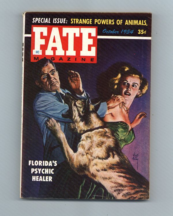 Published Oct 1954 by Clark Publishing Company.$2.65Volume 7 - Issue 10, October 1954. Pulp magazine devoted to exploring the paranormal. This issue features cover art by Virgil Finlay, plus articles on Strange Powers of Animals, and Florida's Psychic Healer! Softcover, 5 1/2-in. x 7 1/2-in., 130 page, Text (with B&W Illustrations and Photos). Cover price $0.35.