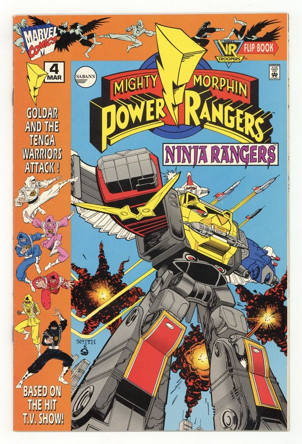 $16.00It's a fun-filled flip-book as Goldar and the Tenga Warriors attack! Plus, an action-packed adventure with TV's hottest heroes, the VR Troopers, as they try to defeat...a ghost?! Ninja Rangers: Written by Fabian Nicieza, with pencils by Bart Schmitz. VR Troopers: Written by Frank Strom, with pencils by Steve Ditko. Cover price $1.75.