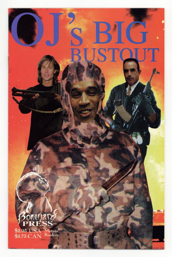 Published Mar 1995 by Boneyard Press.$16.00Story by Hart Fisher and Nelson Danielson. Art by Nelson Danielson. One of the savage send-ups of 1990s celebrities from notorious publisher Boneyard Press. Having escaped from prison, suspected killer O.J. Simpson is pursued by white supremacists, rabid TV news journalists, and the demons from Doin' Time With O. J. May or may not include Verdict trading cards. 32 pages, B&W. Mature readers. Cover price $2.95.
