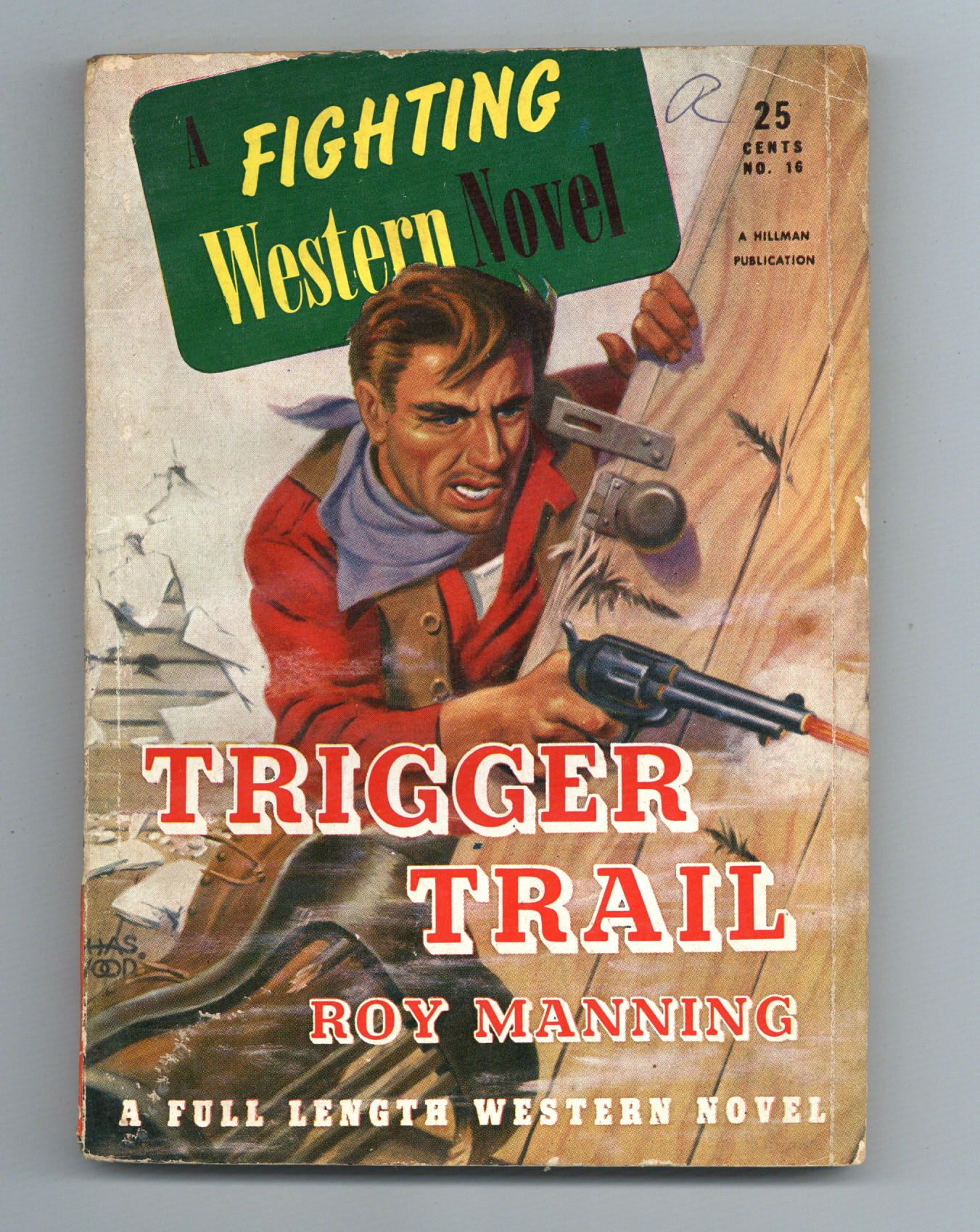 $59.00Reprint of pulp serial novel "Trigger Trail". Written by Roy Manning. Softcover (squarebound), 5 1/2-in. x 7 1/2-in., 128 pages, Text Only Cover price $0.25.