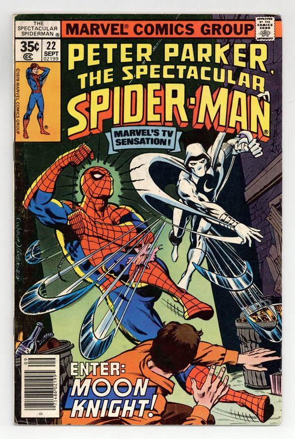 Mark Jeweler Advertisement Insert Variant. Moon Knight guest-stars in "By the Light of the Silvery Moon Knight!" Script by Bill Mantlo, pencils by Mike Zeck, inks by Bruce D. Patterson. Cyclone cameo. Dave Cockrum/Joe Rubinstein cover. Cover price $0.35.