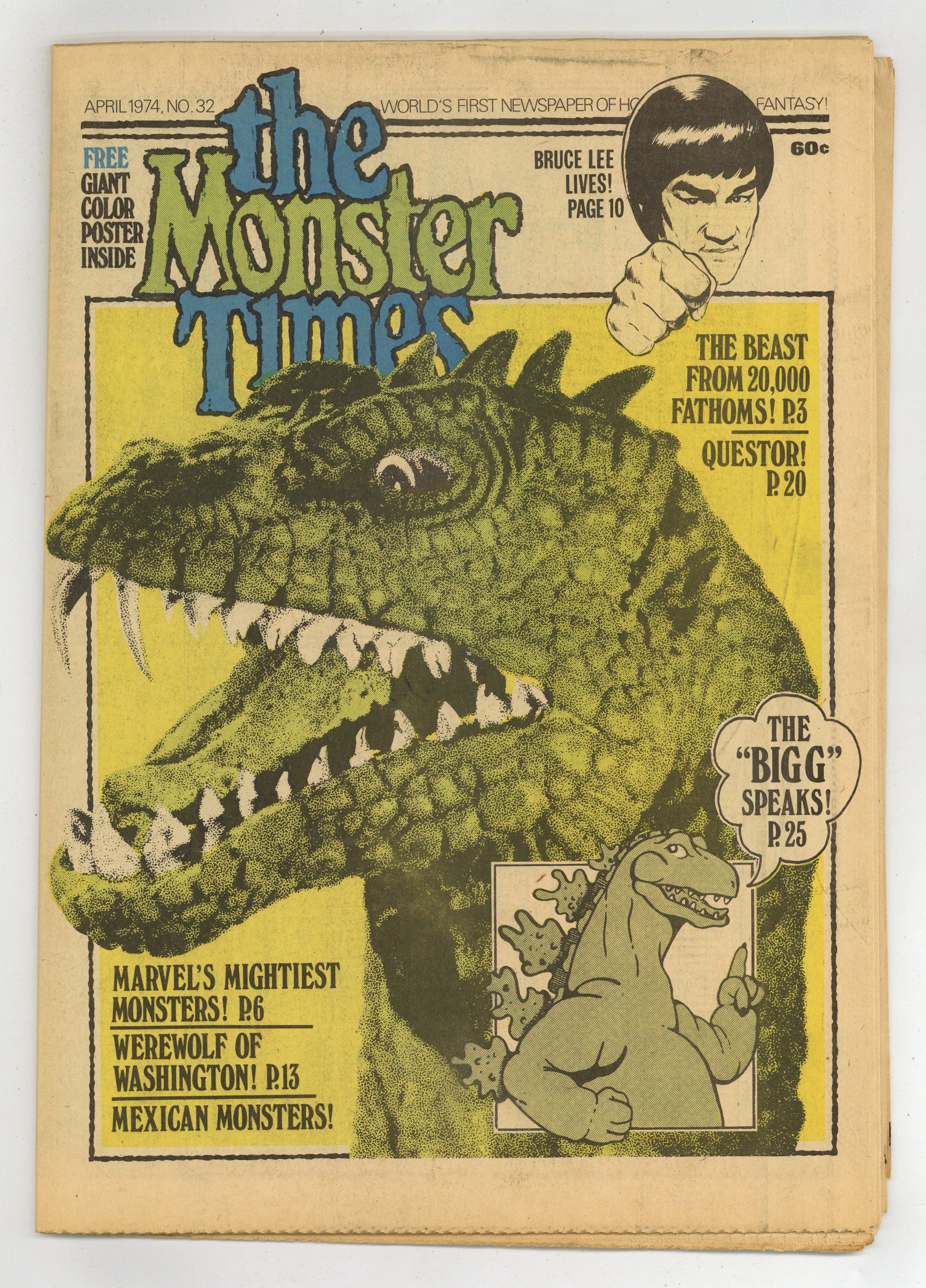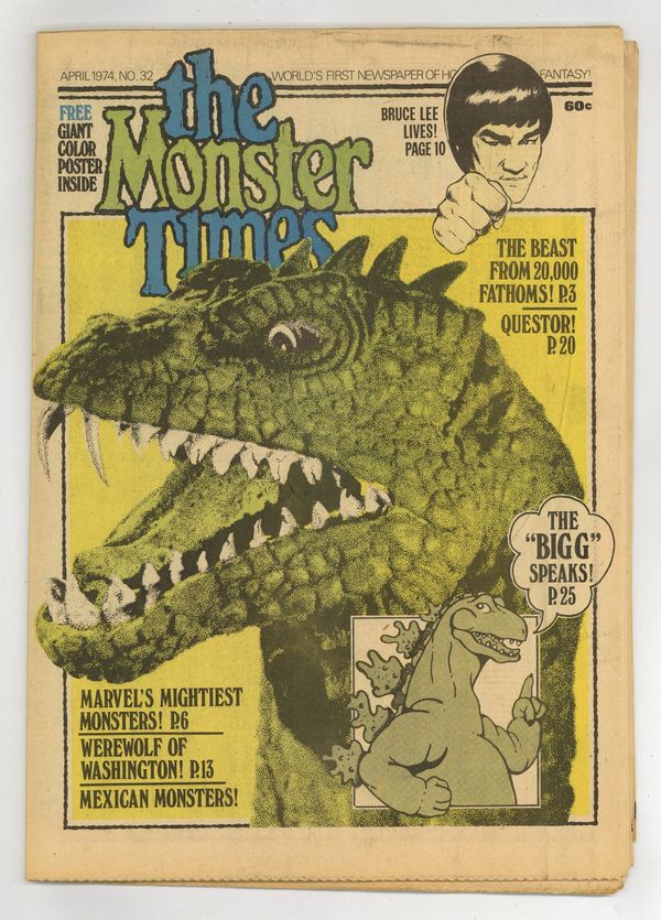 Published Apr 1974 by Monster Times Publishing.$22.00The World's First Newspaper of Horror, Sci-Fi and Fantasy! This issue: Marvel's Mightiest Monsters! Werewolf of Washington! Mexican Monsters! The Beast from 20,000 Fathoms! Questor! Bruce Lee Lives! Plus - Free Giant Color Poster Inside. Cover price $0.60.
