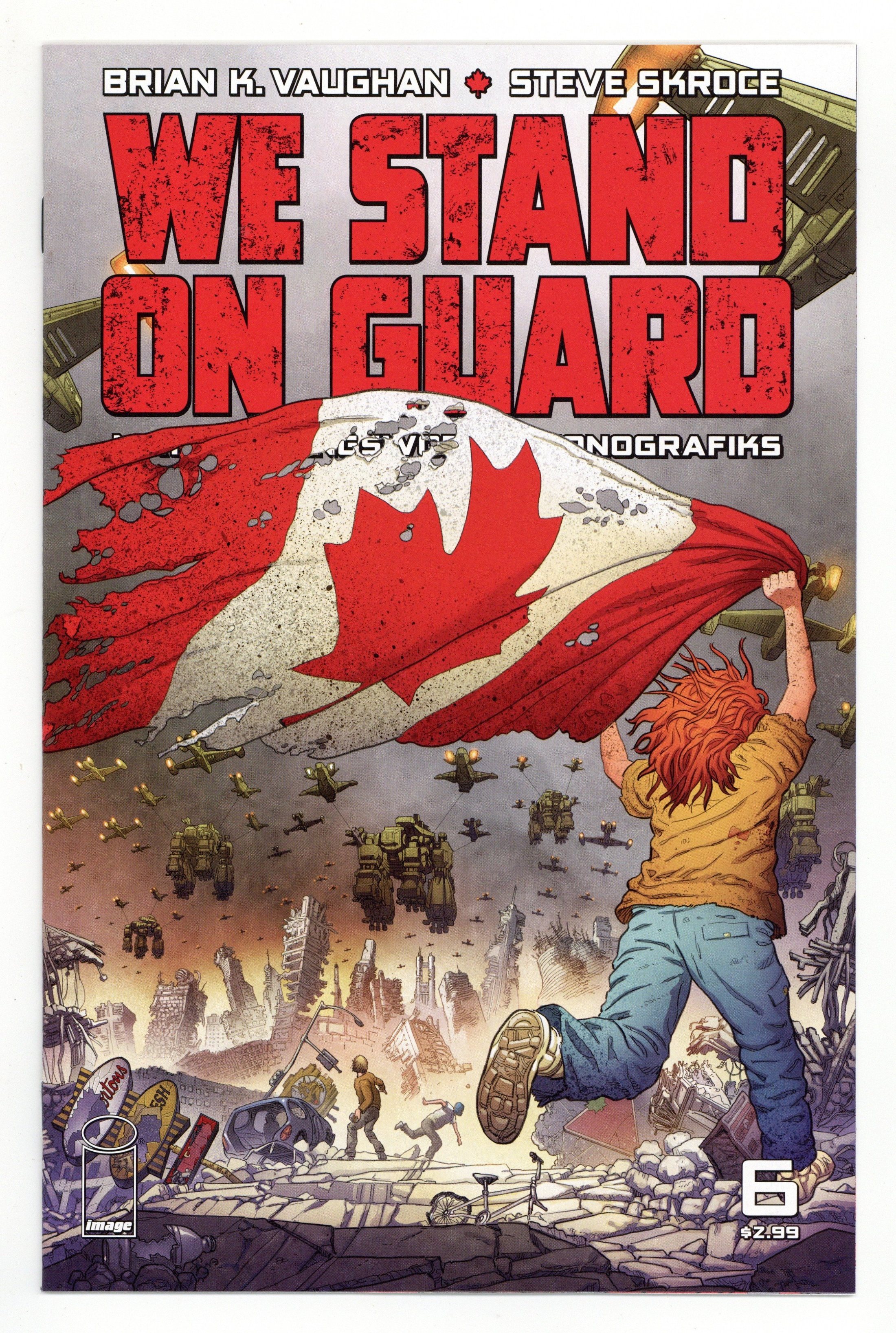 Written by Brian K. Vaughan. Art and Cover by Steve Skroce. MINISERIES CONCLUSION The smash-hit miniseries reaches its epic FINAL ISSUE with explosive battles and shocking revelations... but how will things end for the Great White North? 28 pages, full color. Rated M Cover price $2.99.