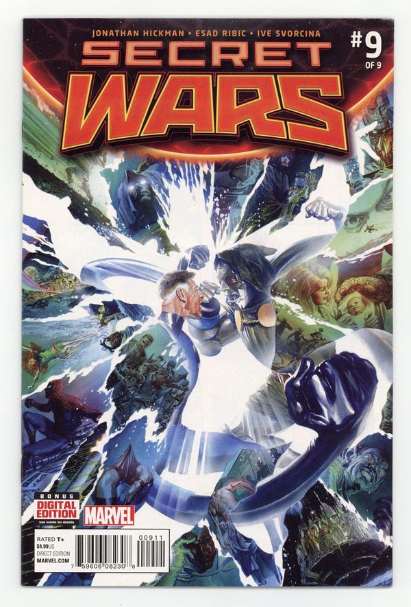 $15.00Written by Jonathan Hickman. Art by Esad Ribic. Cover by Alex Ross. GENESIS! 52 pages, full color. Rated T+ Cover price $4.99.