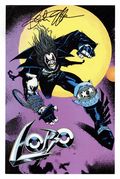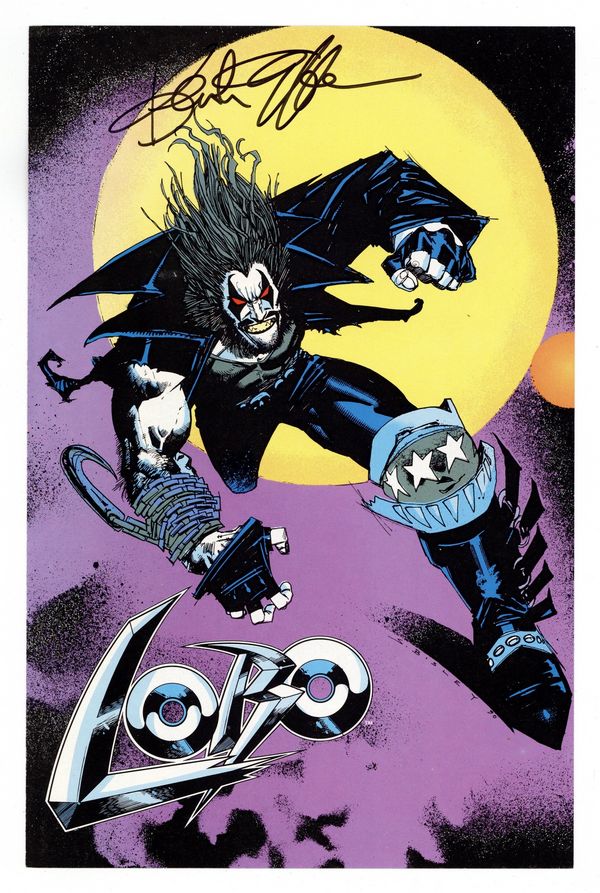 Promotional Store Flyer Advertisement for the 1990 Lobo miniseries written by Keith Giffen and Alan Grant, with art by Simon Bisley. Not sold to the public. Double sided flyer sheet folded once in the center. 8.5 x 10.25 (17 x 10.25 unfolded).