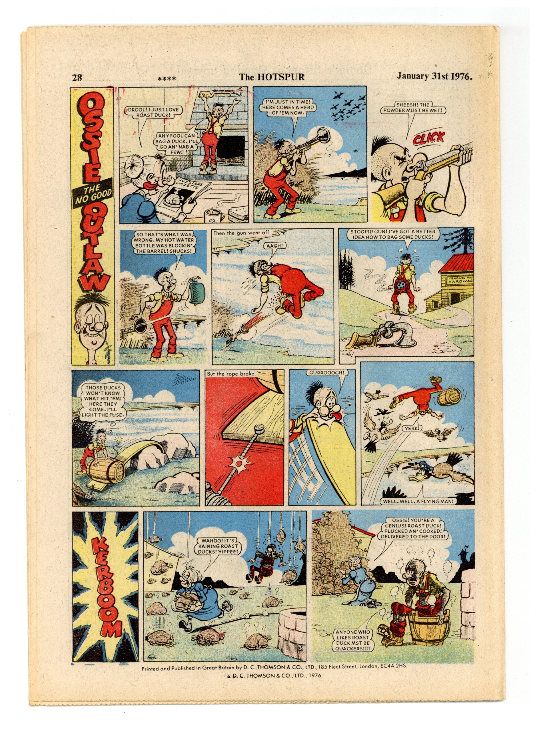 January 31st, 1976. Action, Adventures, Western, and Humor comic strips featuring a new Scarlet Hawk adventure, Napper Todd, and Pick of the Props! Softcover 8 1/2-in. x 12-in., 28 pages, PC/PB&W.