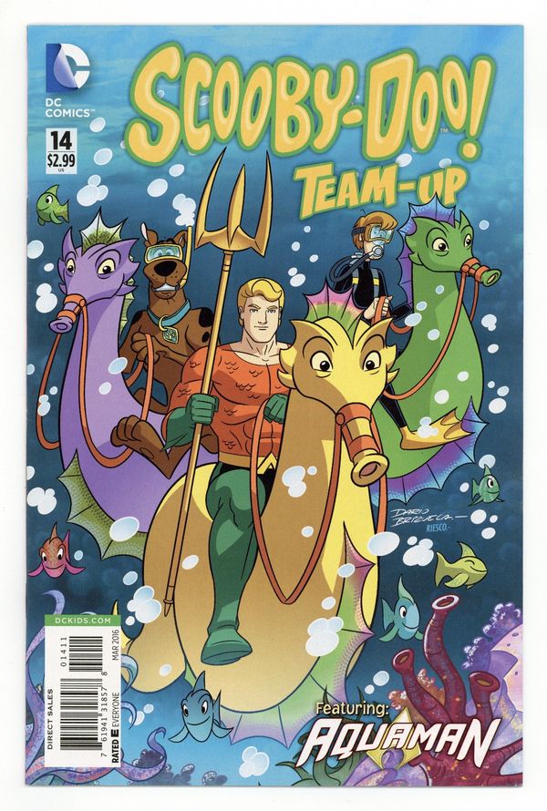 Tags: Aquaman$16.00Written by Sholly Fisch. Art and Cover by Dario Brizuela. The surface world is threatened by an ancient menace from beneath the sea! This looks like a job for Scuba-Doo! Aquaman, Scooby and the gang will have to descend to the depths to unravel the mystery on the ocean floor. But are the supernatural creatures real, or is it just a scheme to conquer the undersea kingdom of Atlantis? 28 pages, full color. Rated E Cover price $2.99.