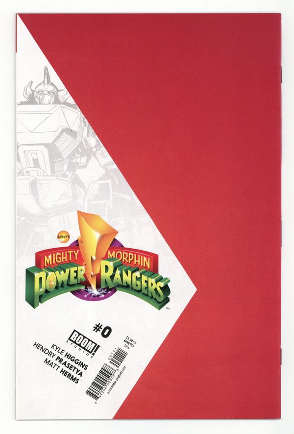 Published Jan 2016 by Boom Studios.$30.00Written by Steve Orlando and Mairghread Scott. Art by Daniel Bayliss and Corin Howell. Cover by Goni Montes. It's Morphin Time! The Mighty Morphin Power Rangers make their BOOM! Studios comic debut in this kick-off #0 issue that sets the stage for the rest of the series. After escaping Rita Repulsa's mind control, Tommy Oliver, the Green Ranger, joins up with the rest of the Power Rangers to combat her never-ending evil plans. Any semblance of a normal life is gone for Tommy now, but with his newfound family there lies hope for a brighter path. Includes the short story from the San Diego Comic-Con exclusive Mighty Morphin Power Rangers comics! 24 pages, full color. Cover price $3.99.
