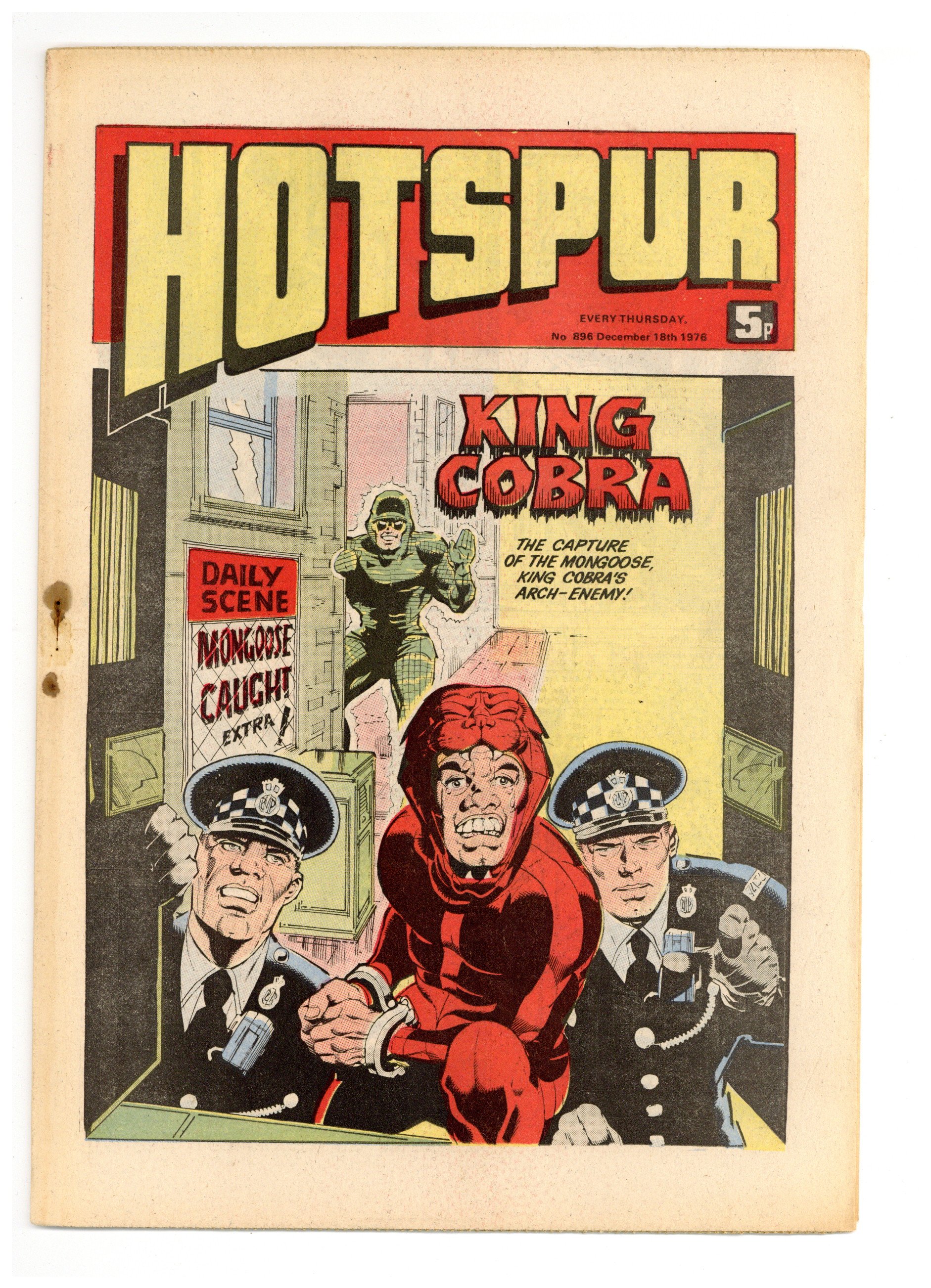December 18th, 1976. Action, Adventures, Western, and Humor comic strips featuring the return of King Cobra, Grasshopper Green and The Last School! Softcover 8 1/2-in. x 12-in., 32 pages, PC/PB&W.