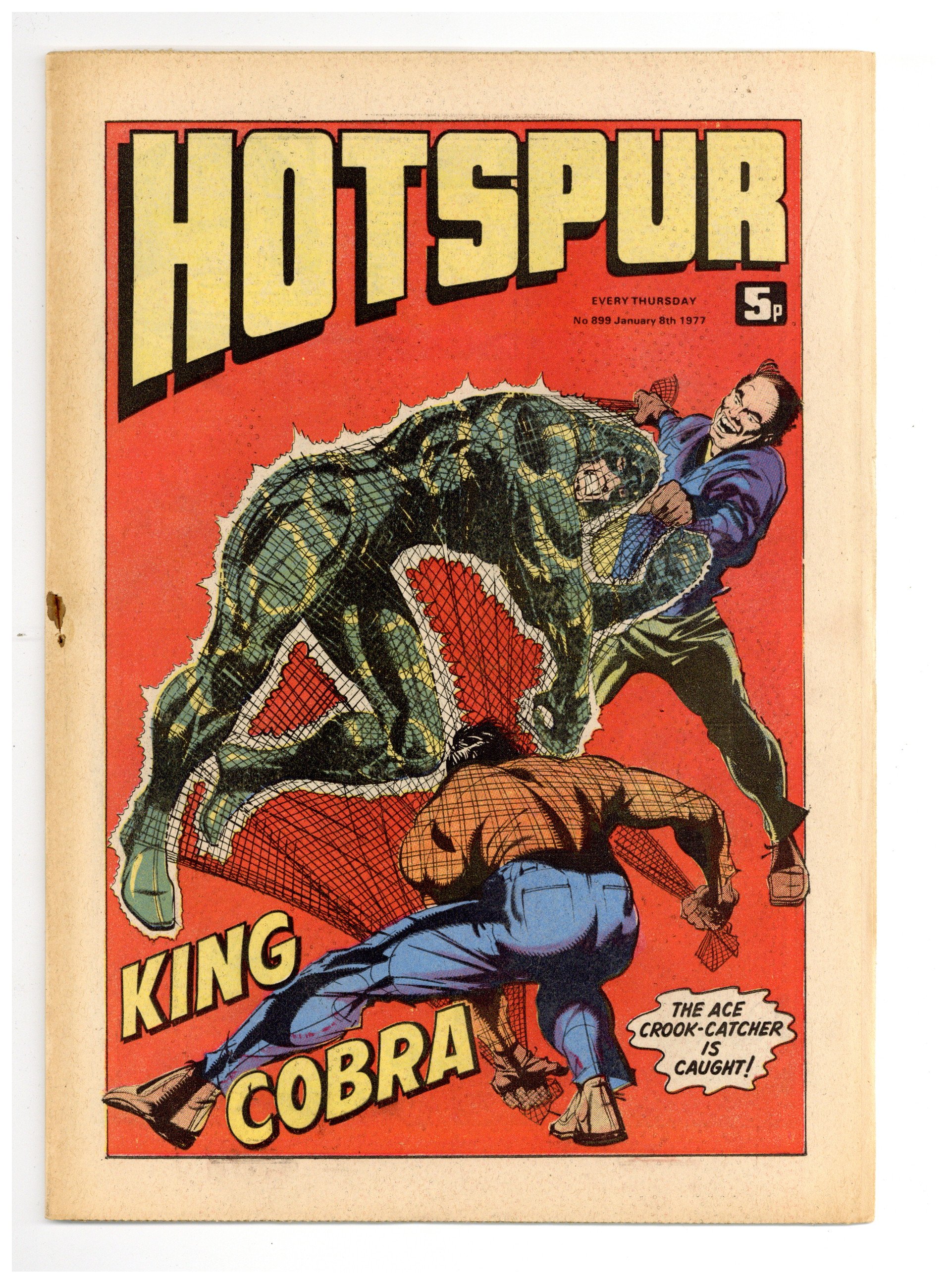 January 8th, 1977. Action, Adventures, Western, and Humor comic strips featuring the return of King Cobra, Grasshopper Green and The Last School! Softcover 8 1/2-in. x 12-in., 32 pages, PC/PB&W.