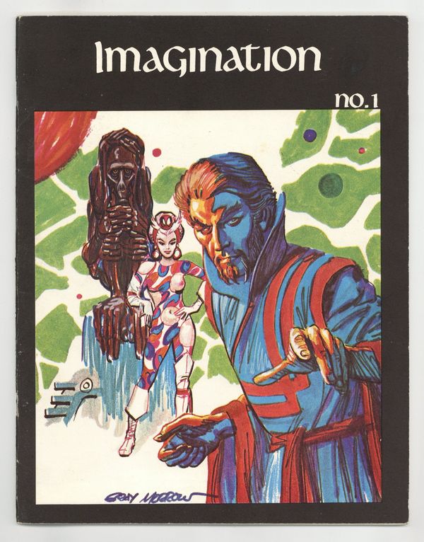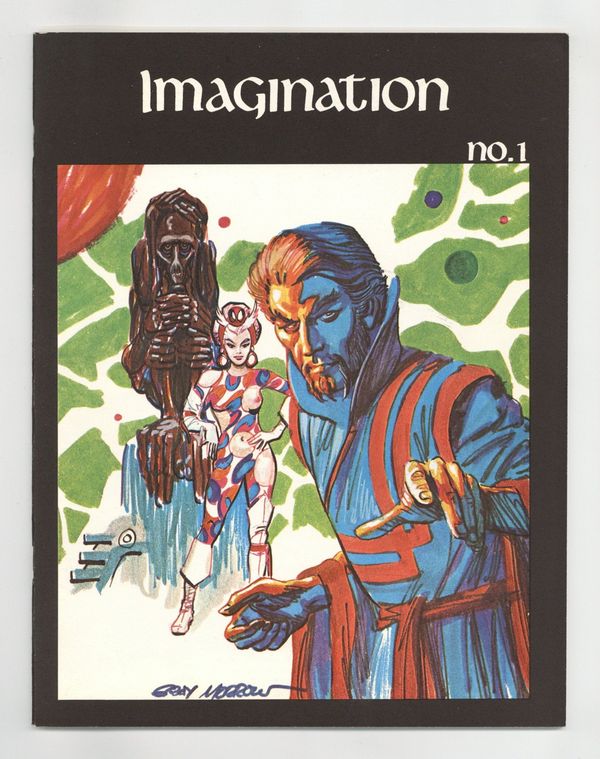 Published 1970 by Imagination Publishing.$34.00Cover by Gray Morrow. Although only one issue was ever published, this fanzine style magazine aimed to show the gravitas and weight that could be brought to bear on the fantasy genre comic strip by showcasing writers and artists of the highest magnitude. "Explored" by Jeff Jones, "Tangent" by Neal Adams, "A Gift of Love" by William T. Stillwell, "Lady Madonna" by Eric Pave and Stillwell, "Conjure Woman" by Berni Wrightson, and "Necromancy" by Mike Kaluta. Side-stitched, paper cover, printed on heavy stock paper, 32pg, B&W. Mature Readers. Cover price $2.00.