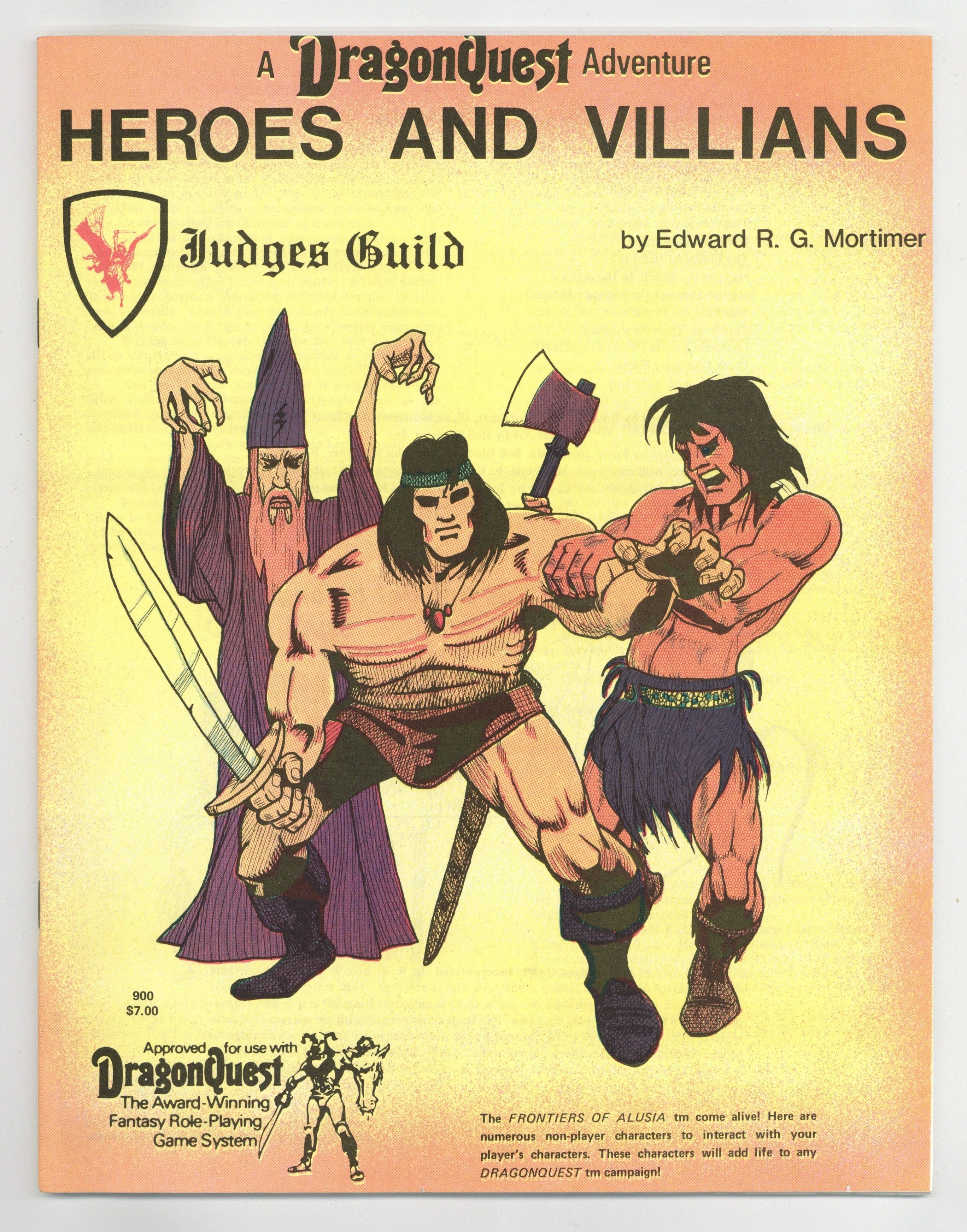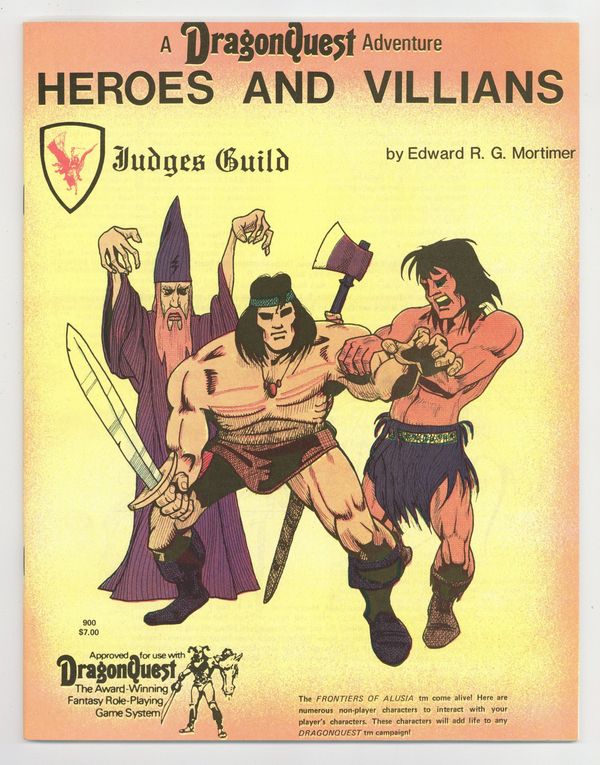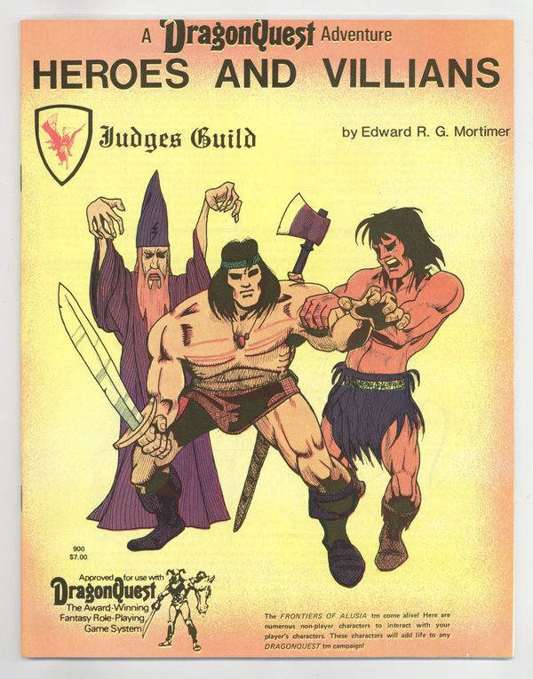 Published Mar 1982 by Judges Guild.$2.801st printing. By Edward R.G. Mortimer. The Frontiers of Alusia come alive! Here numerous non-player characters to interact with your player's chracters. Approved for use with DragonQuest the award-winning fantasy role-playing game system. Softcover (Newsprint Saddle-Stitched/Stapled), 8 1/2-in. x 11-in., 48 pages, B&W. Cover price $7.00.