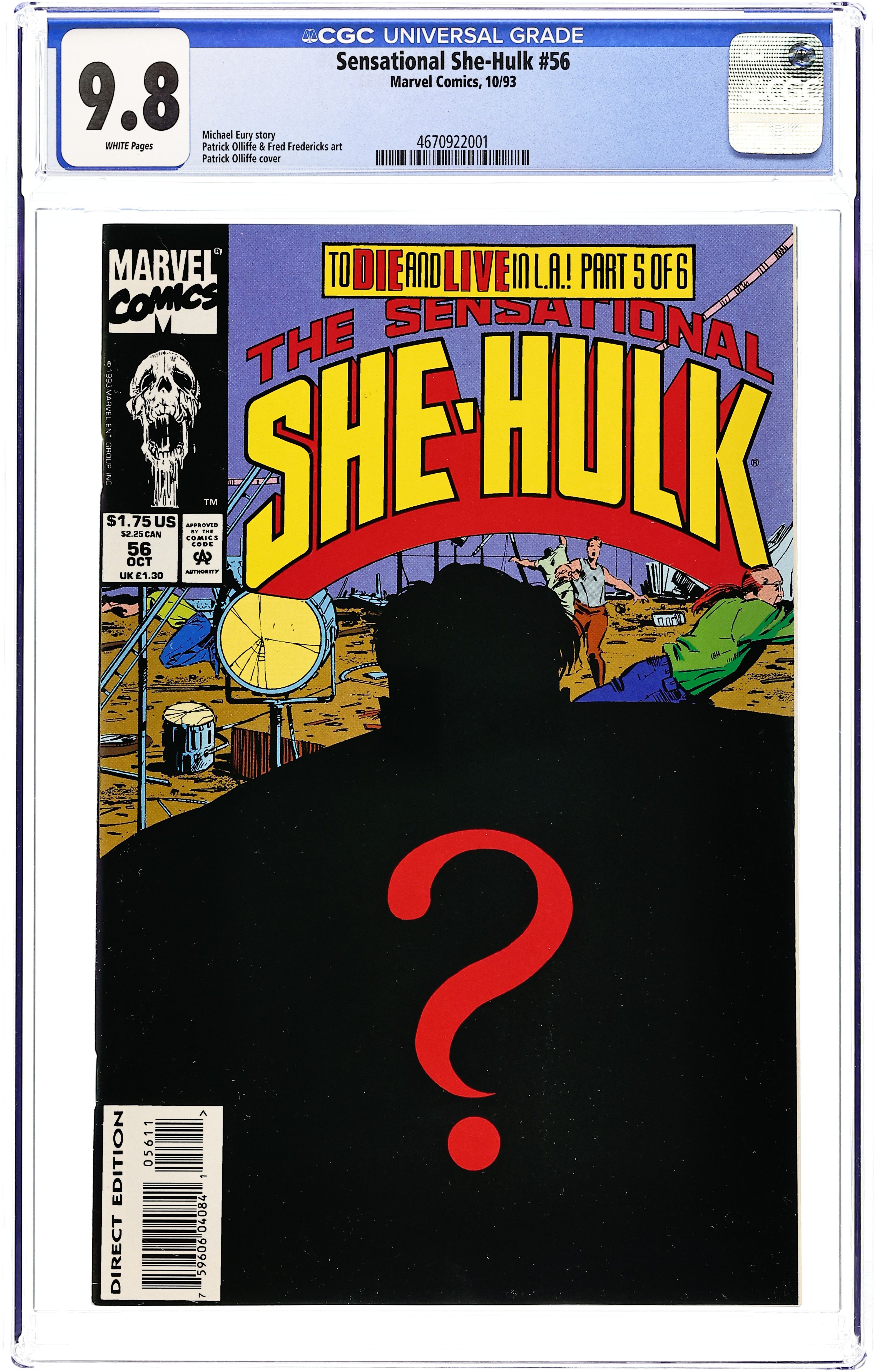 Cover art by Patrick Olliffe. To Die and Live in L.A.! Part 5 of 6: The Edge of Plight, script by Michael Eury, pencils by Patrick Olliffe, inks by Fred Fredericks; She-Hulk battles War Zone; Hulk makes cameo on last page. 36 pgs. $1.75. Cover price $1.75.