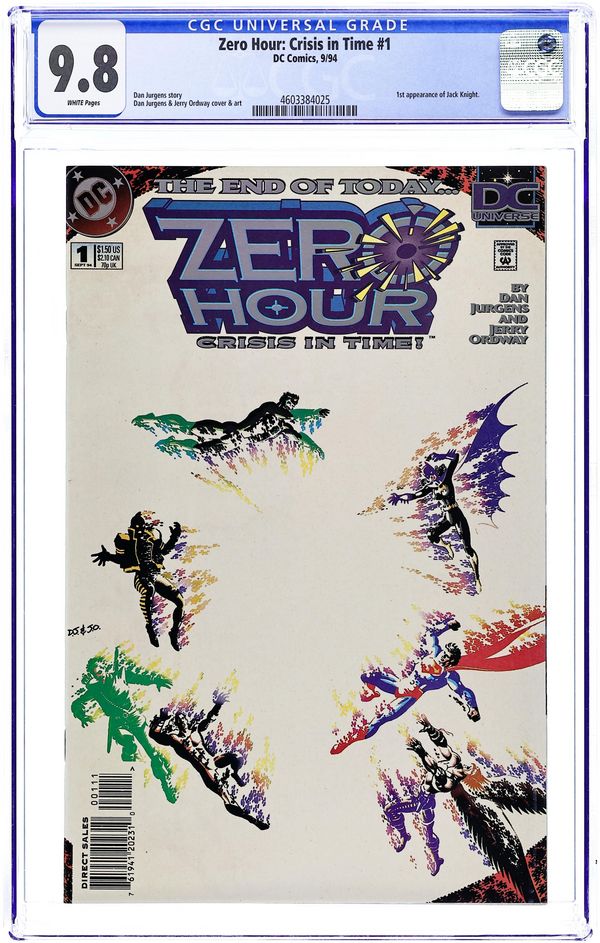 Direct Edition. The universe continues to unravel through time, destruction working its way to the present. In fact, cities begin to vanish, and futuristic characters such as Impulse and Booster Gold disappear. Jack Garrick appeals to The Spectre for help. Hal Jordan as Parallax--Extant's partner in cosmic crime--reveals his plan to reform and reshape the universe as he sees fit. Written and drawn by Dan Jurgens, with inks by Jerry Ordway. Cover price $1.50.