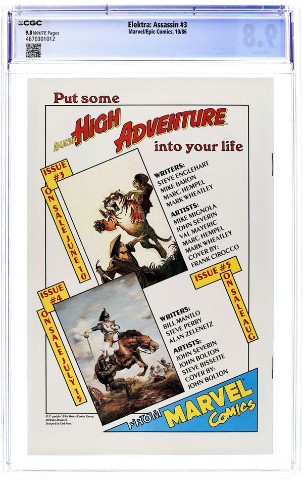 "Rough Cut." Elektra escapes confinement by S.H.I.E.L.D., whose agents interrogate the fiery assassin with brain scans and other methods. Written by Frank Miller. Pencils, inks, and cover by Bill Sienkiewicz Cover price $1.50.