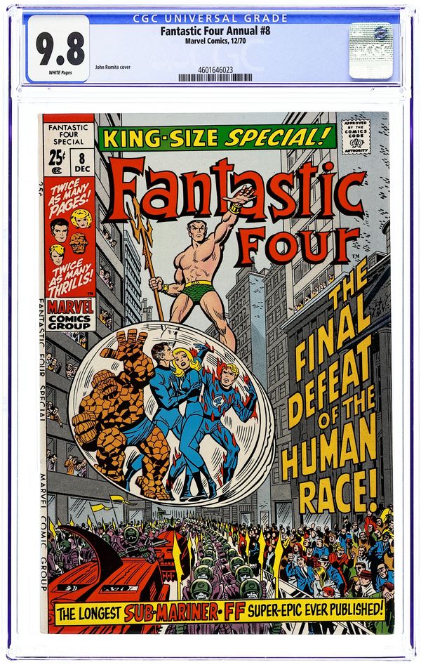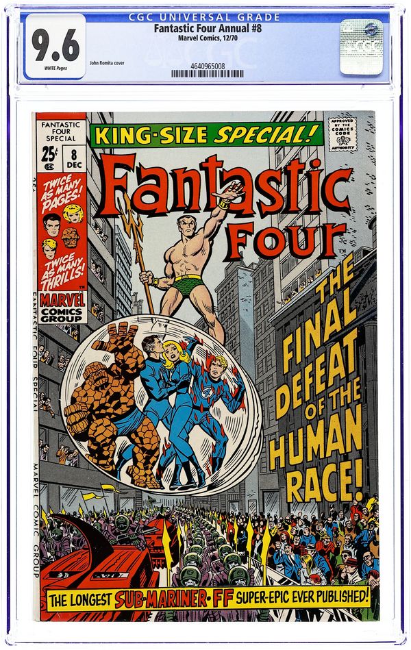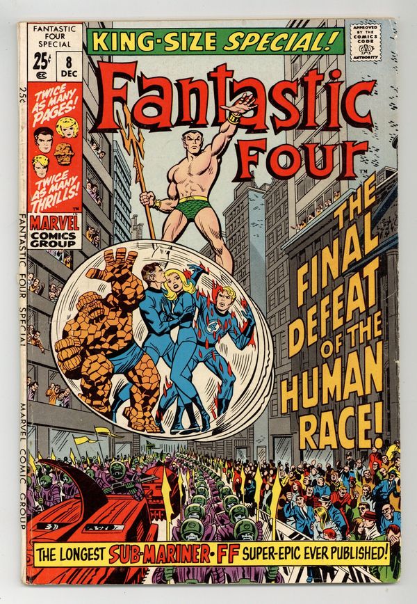 All Jack Kirby reprints: "Sub-Mariner Versus the Human Race" and gallery pages from FF Annual 1. New John Romita Sr./John Verpoorten cover. 68 pgs. Cover price $0.25.