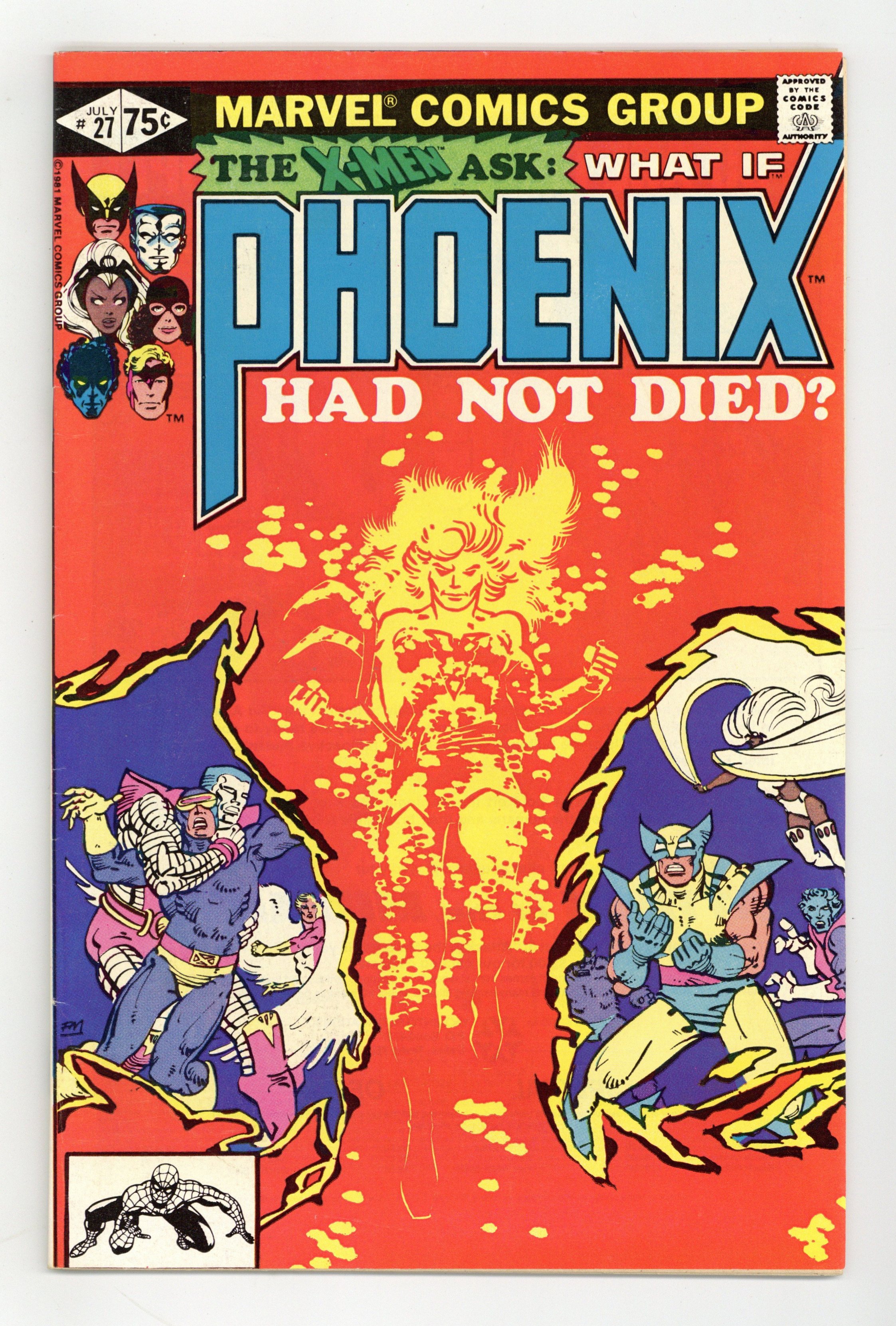 Direct Edition. Cover art by Frank Miller. "What If Phoenix Had Not Died?", script by Jo Duffy, pencils by Jerry Bingham, inks by John Stuart (pages 1-21), Al Milgrom (page 26), and Terry Austin (pages 31, 34); Uatu ponders over the story of the Jean Grey as the Phoenix and recalls her journey alongside the X-Men; He sees an alternate reality where she did not die during the incursion with the Shi'ar; In this alternate reality, she was reborn again and when the X-Men are called to battle Galactus and Terrax in the Shi'ar galaxy, she unleashes the Phoenix force. Based on The X-Men (1963 series) #137. "Kree Encounter!", script by Mark Gruenwald, pencils by Ron Wilson, inks by Bruce Patterson; Uatu recalls the story of Astron on the planet Uranus; He has found the Kree Sentry #213 destroyed; He goes to speak to his fellow exiled members and tells Uranos to stop the destruction of the Kree weapons; Uranos calls him a coward and says he is building a spaceship to travel back to Earth; Astron tells Uranos he is not leaving Uranus and he is left on the planet. "Spider-Man Vs. the Human Computer!" ad for Hostess Cup Cakes. 52 pgs. Cover price $0.75.