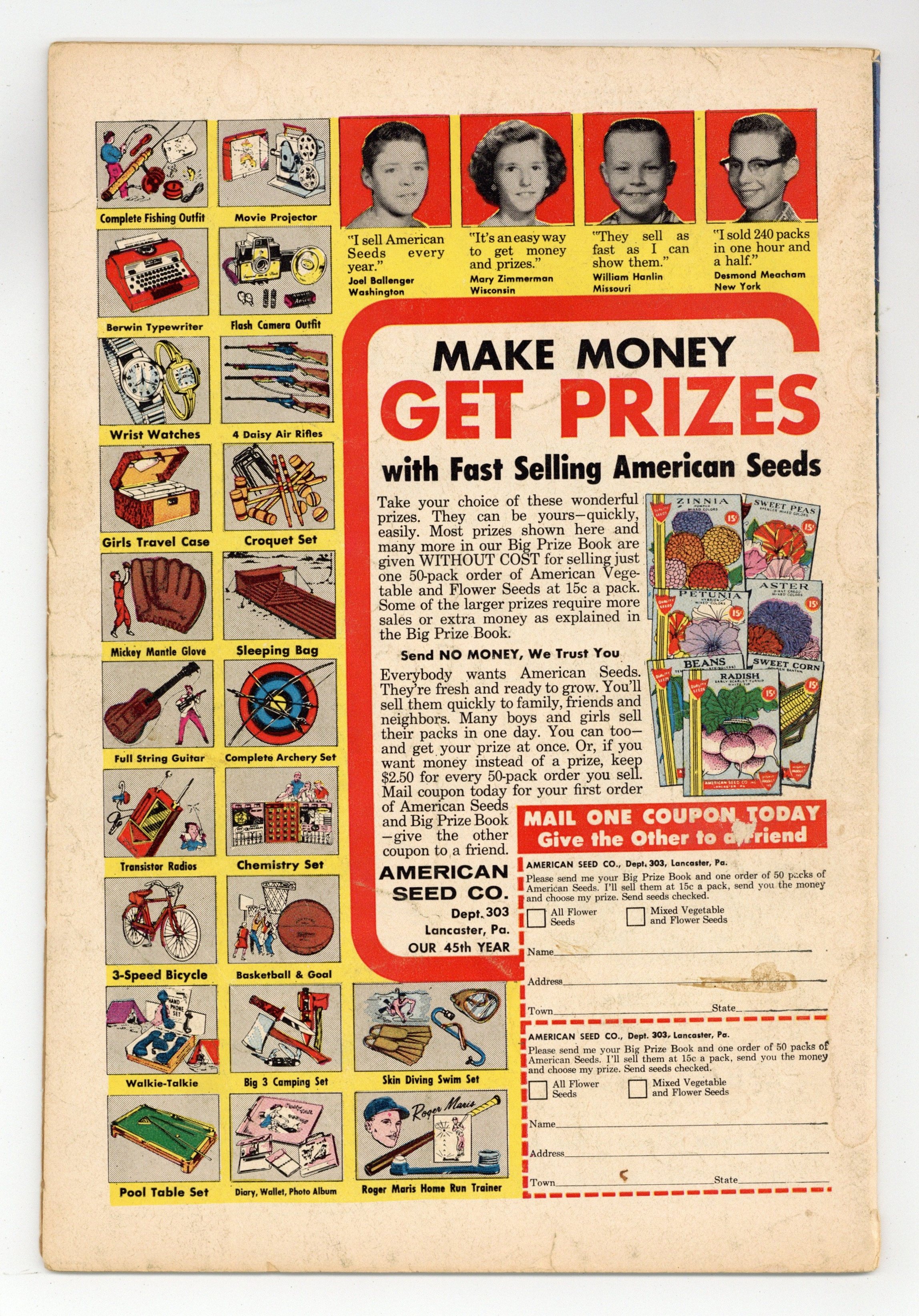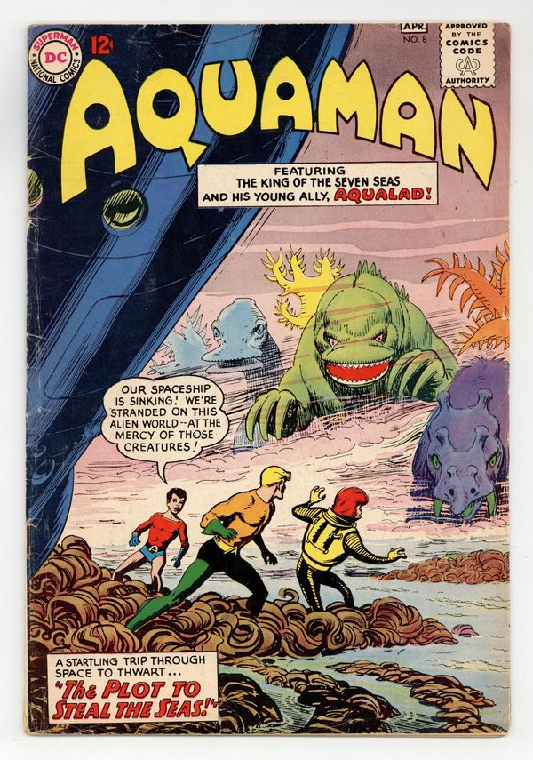 Cover art by Nick Cardy. The Plot to Steal the Seas, art by Nick Cardy; Aquaman and Aqualad find themselves stranded on an alien world. Article on Salmon, Shark, Porpoises, and Tropical Fish, art by Henry Boltinoff. Lucky, World's Greatest Stunt Man humor page by Henry Boltinoff. Secrets of the Sea Shells article. 36 pgs. $0.12. Cover price $0.12.