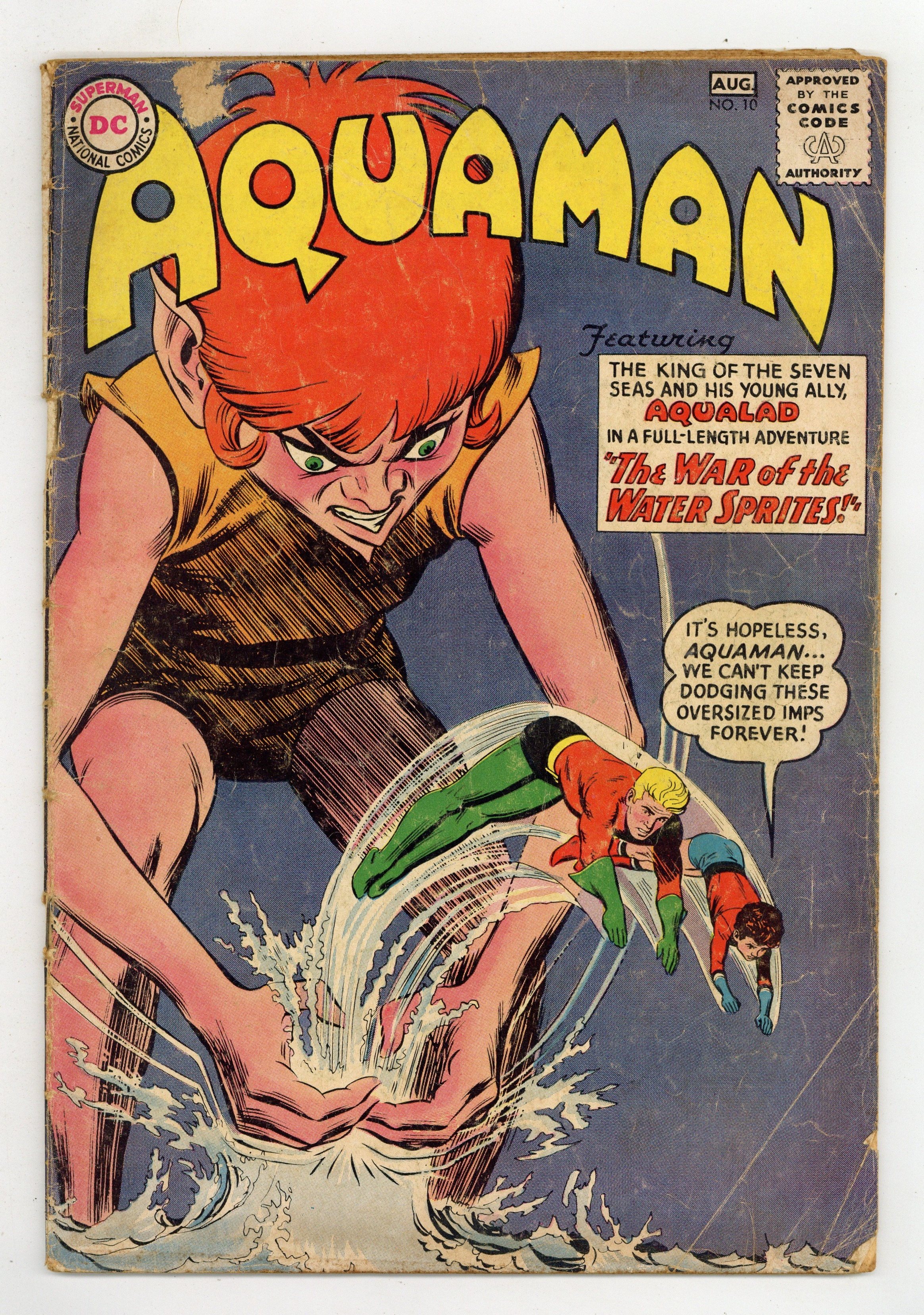 Cover art by Nick Cardy. The War of the Water Sprites, art by Nick Cardy; Aquaman goes to Quisp's home world; Quirk removes Quisp's powers; giants plan to invade the surface world. Homer the Skin Diver humor page by Henry Boltinoff. City Under the Ice article. 36 pgs. $0.12. Cover price $0.12.