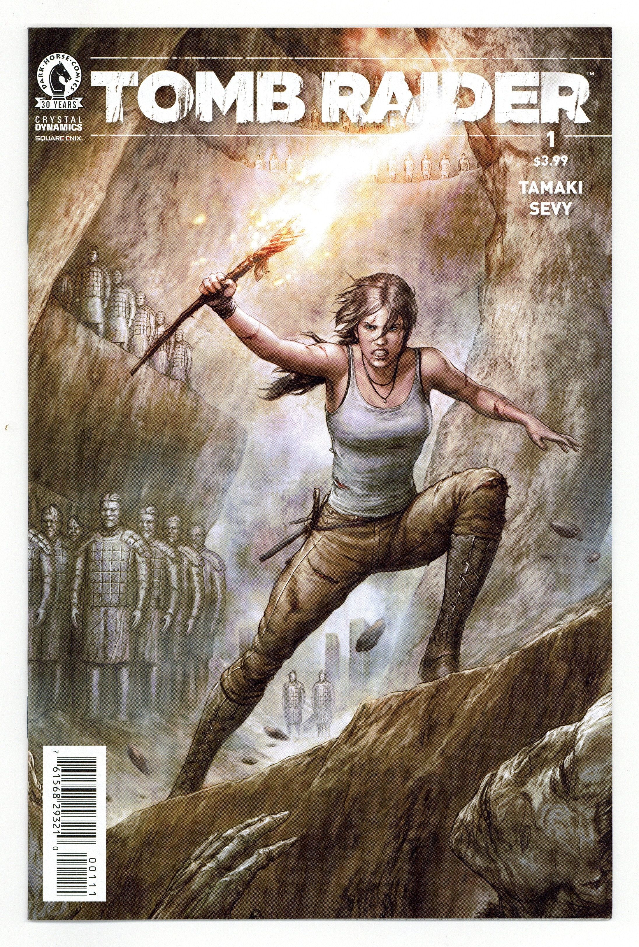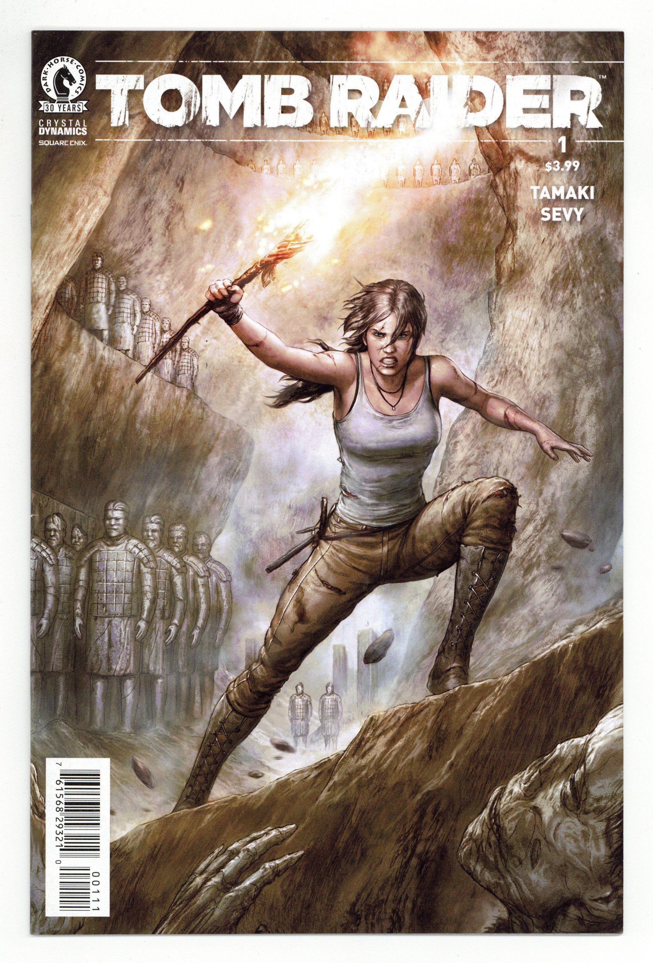 Published Feb 2016 by Dark Horse.$23.00Written by Mariko Tamaki. Art by Phillip Sevy. Cover by Agustin Alessio. After Rise of the Tomb Raider, Lara Croft's adventure continues in a new comic series! Lara Croft is pursuing a lost truth about the world that just might unlock the secret to defeating death! She becomes entangled in a search for a rare mushroom said to grant immortality and a lethal new enemy that just won't die! 28 pages, full color. Cover price $3.99.