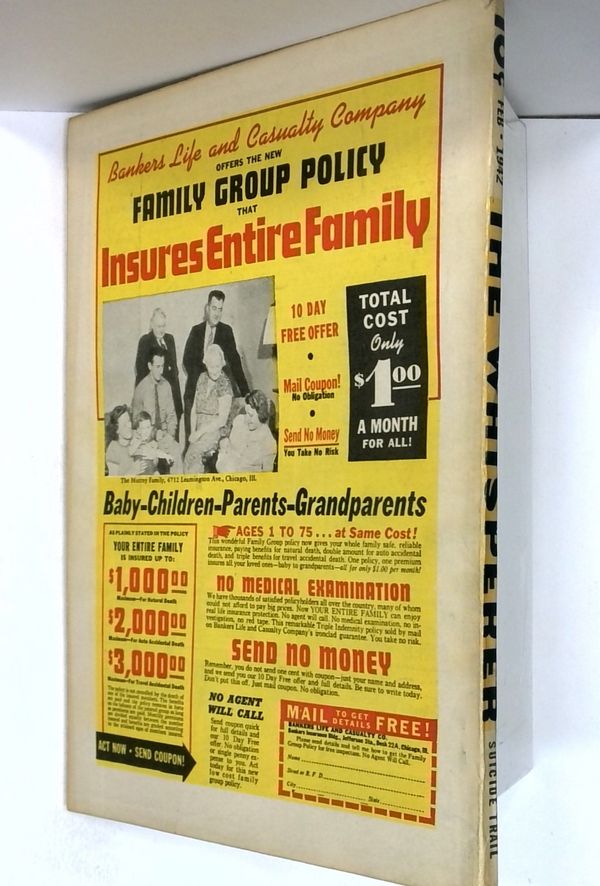 Contains the stories "Suicide Trail" by Clifford Goodrich, "The Murder Mite" by Robert C. Blackmon, and "Riding High" by Leo Stalnaker. Cover by Hubert Rogers. 114 pgs, 9"x6.5" Cover price $0.10.