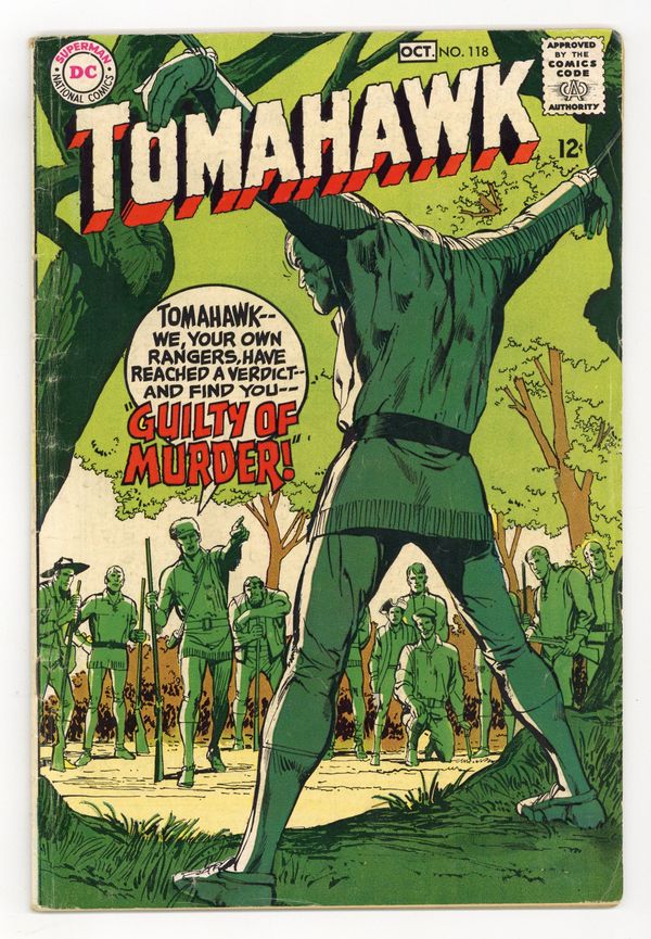 Cover art by Neal Adams. Tomahawk: Guilty of Murder, script by George Kashdan, pencils by Jerry Grandenetti, inks by Joe Orlando; Rangers charge Tomahawk with murder. The Ranger Who Wouldn't Fight starring Tomahawk, script by France Herron, art by Fred Ray. 36 Pages, Full Color. Cover price $0.12.