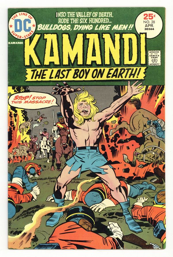 $4.30"Enforce the Atlantic Testament." Script and pencils by Jack Kirby, inks by D. Bruce Berry. Cover by Kirby and Berry. Kamandi and Ben Boxer continue battling Sacker's company forces and fierce leopards. Cover price $0.25.