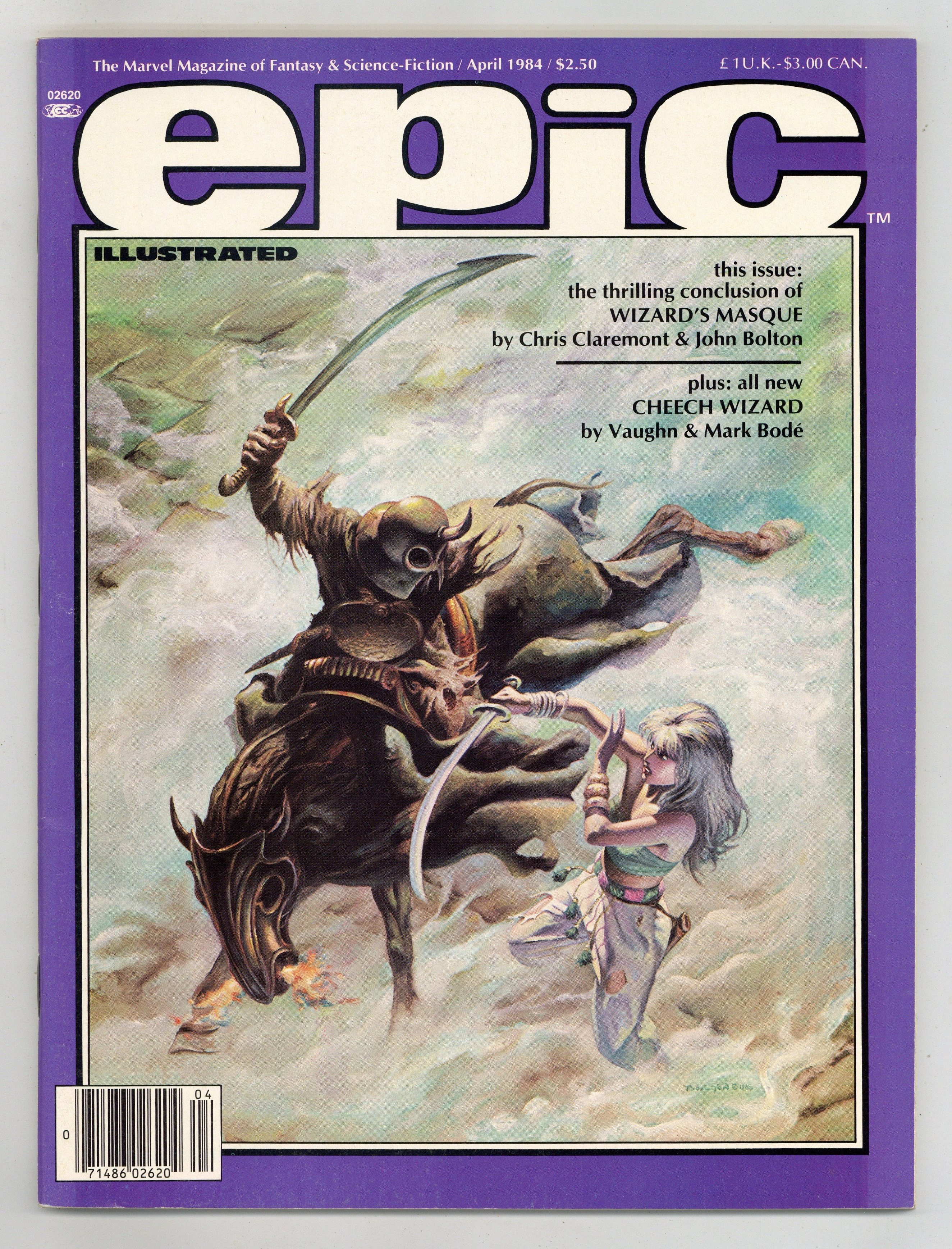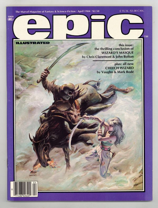 $17.50Cover art by John Bolton. Marada The She-wolf story, script by Christopher Claremont, art by John Bolton. The Last Battle starring Generation Zero, script by Pepe Moreno (plot) and Archie Goodwin (script), art by Pepe Moreno. Mediaview article by Dennis O'Neil. Ventriloquist, script and art by Zoran Vanjaka. Plague Fugue (Chapter IV) featuring The Sacred & The Profane, script by Dean Motter, art by Ken Steacy. Bestiary: The Art of Pat Ortega article, art by Pat Ortega. Adventures of Cheech Wizard, script and art by Vaugh Bode. Rebirth!, script by Bill DuBay, art by Lee Elias. 100 pgs. April, 1984. $2.50. Cover price $2.50.