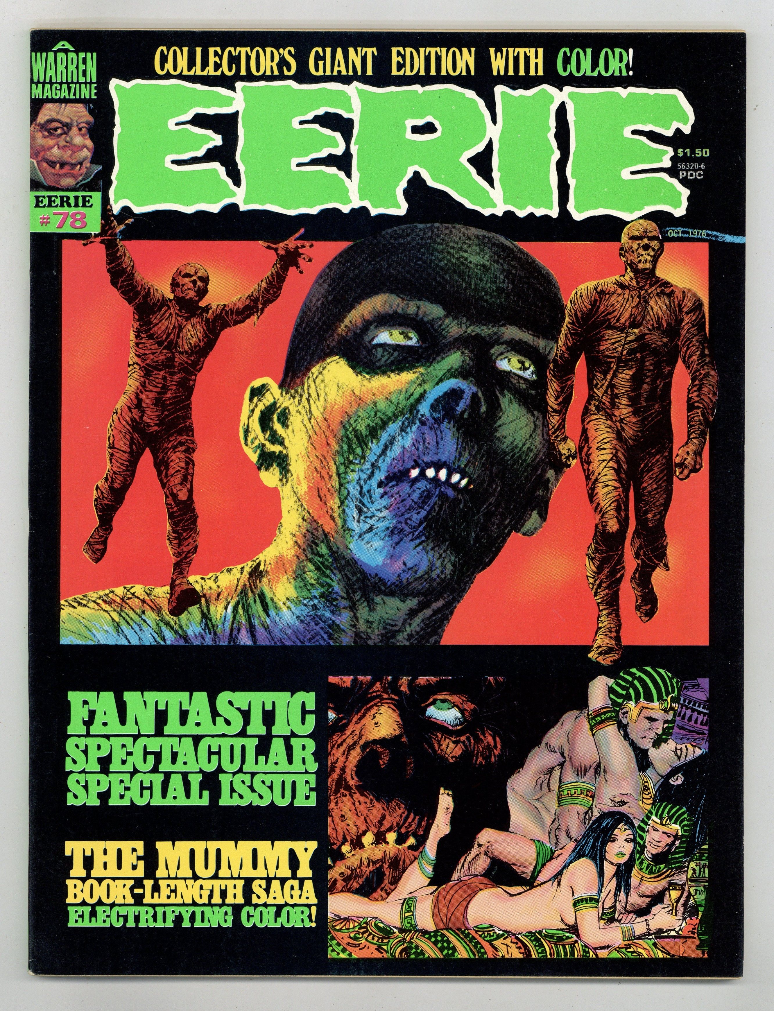Stories in this 1976 Eerie Annual include: The Mummy Walks: The Death of a Friend by Steve Skeates and Jaime Brocal; The Mummy Walks: The Mind Within by Steve Skeates and Jaime Brocal; Ghoulish Encounter by Steve Skeates and Jaime Brocal; Enter Mr. Hyde by Steve Skeates and Jaime Brocal; The Mummy Walks: Stranger in a Village of the Insane; by Steve Skeates and Jaime Brocal; The Mummy: ...And an End by Steve Skeates and Jaime Brocal (with color by Bill DuBay); and The Hope of the Future by Doug Moench and Jaime Brocal. Cover art by Jaime Brocal and Bill Dubay. Cover price $1.25.