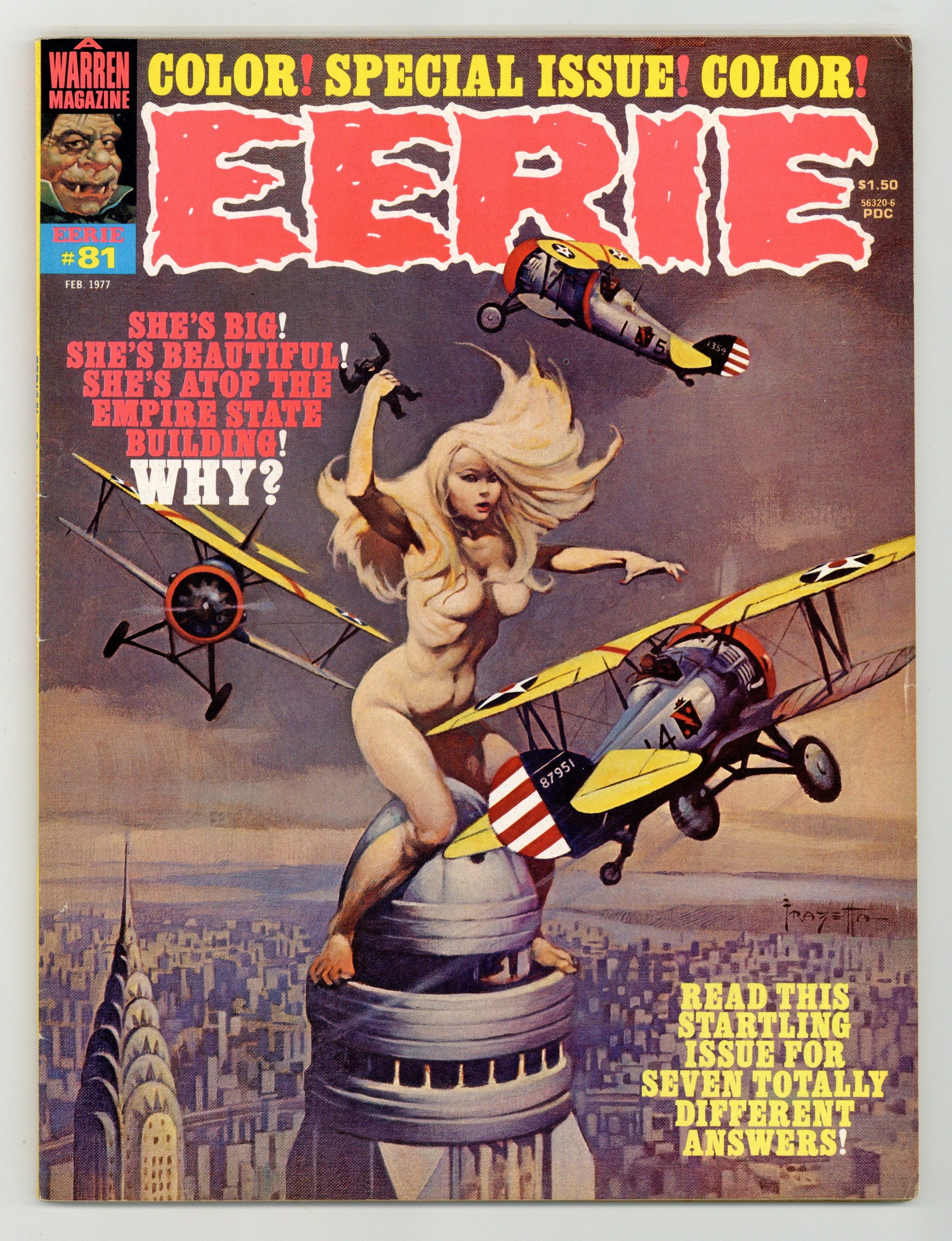 Stories in this issue include: Goodbye, Bambi Boone by Cary Bates, Carmine Infantino, and Dick Giordano; Taking of Queen Bovine by Gerry Boudreau and Ramon Torrents; The Bride of Congo by Bill DuBay, Carmine Infantino, and Gonzalo Mayo; You're a Big Girl Now by Bruce Jones and Richard Corben (in color); Starchild by Louise Jones, David Micheline, and Jose Ortiz; The Giant Ape Suit by Roger McKenzie and Luis Bermego; and Golden Girl by Nicola Cuti and Leopold Sanchez. Each story fits the cover theme of a giant girl atop the Empire State Building. Includes fan letter by comic book humorist Fred Hembeck. Cover art by Frank Frazetta. Cover price $1.50.