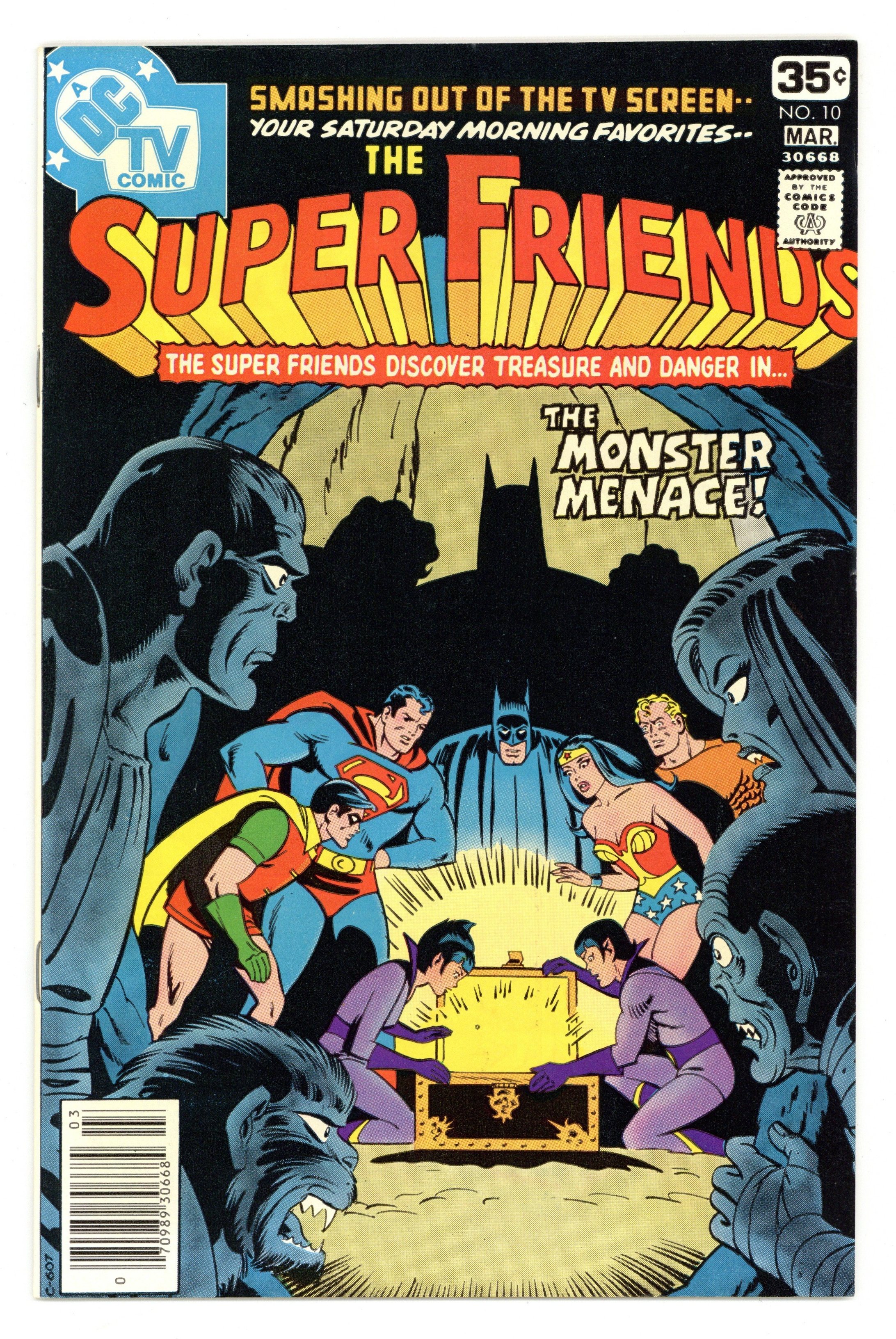 "The Monster Menace." Two monstrous creatures go after a couple of treasures, and the Super Friends attempt to stop them. Starring Aquaman, Batman, Robin, Superman, Wonder Woman, Batwoman, the Wonder Twins and Gleek, Green Lantern, and Sinestro. Script by E. Nelson Bridwell, pencils by Ramona Fradon, inks by Bob Smith. Cover by Fradon and Smith. Cover price $0.35.