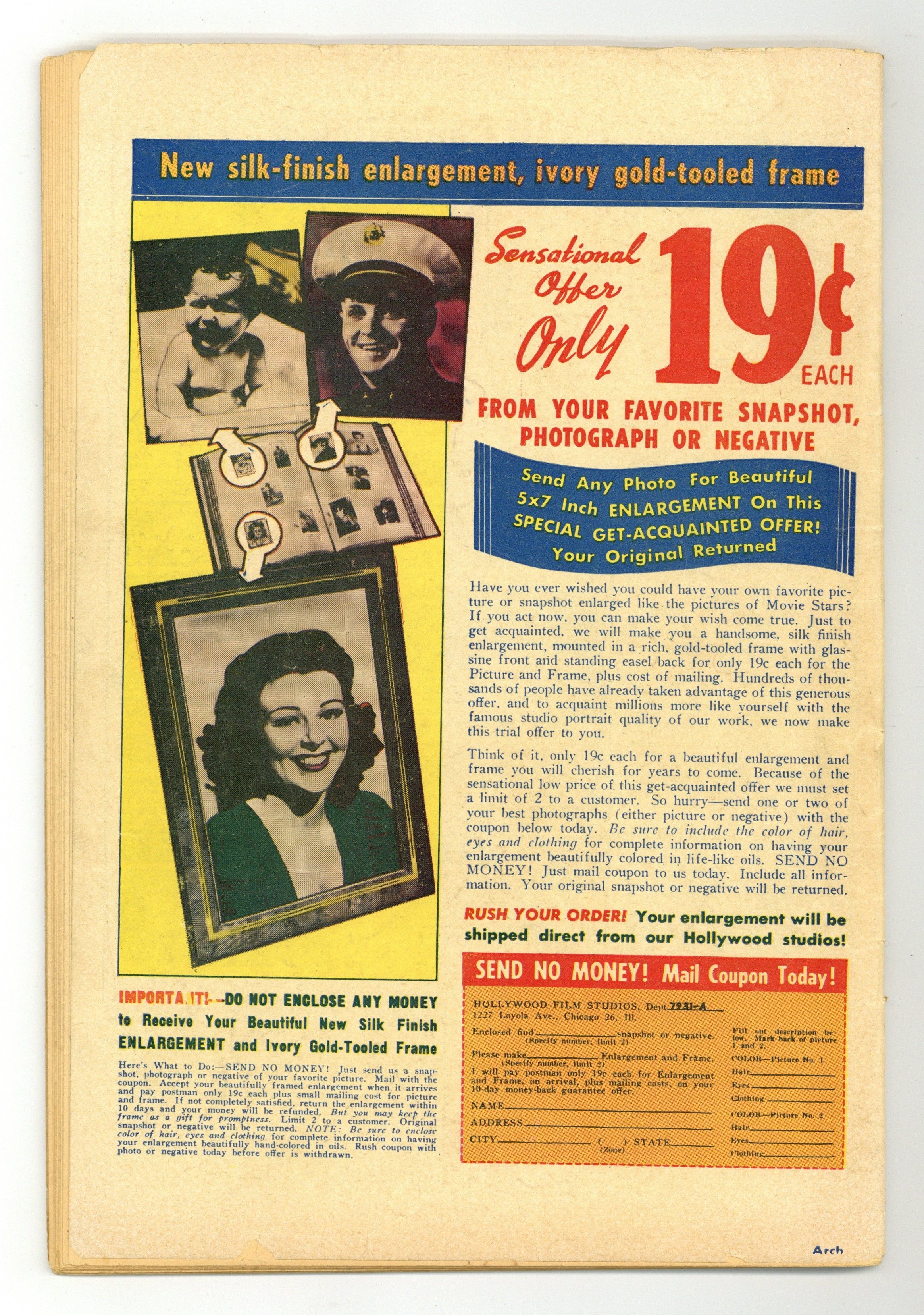 Tags: ArchiePublished Aug 1950 by Archie Publications.$75.00- Centerfold detached at one staple.