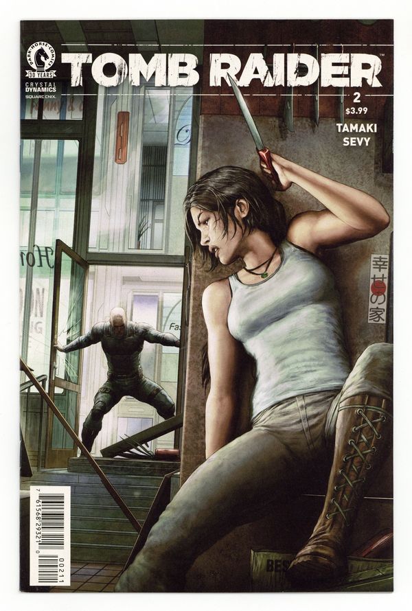 Published Mar 2016 by Dark Horse.$11.25Written by Mariko Tamaki. Art by Phillip Sevy. Cover by Agustin Alessio. After Rise of the Tomb Raider, Lara Croft's adventure continues with Eisner Award- winning writer Mariko Tamaki! To discover the true nature of the soul, Lara is drawn into a hunt for a rare mushroom said to grant immortality. However, she's not the only one in pursuit--the Knights of the Spore will stop at nothing to take Lara down! 28 pages, full color. Cover price $3.99.